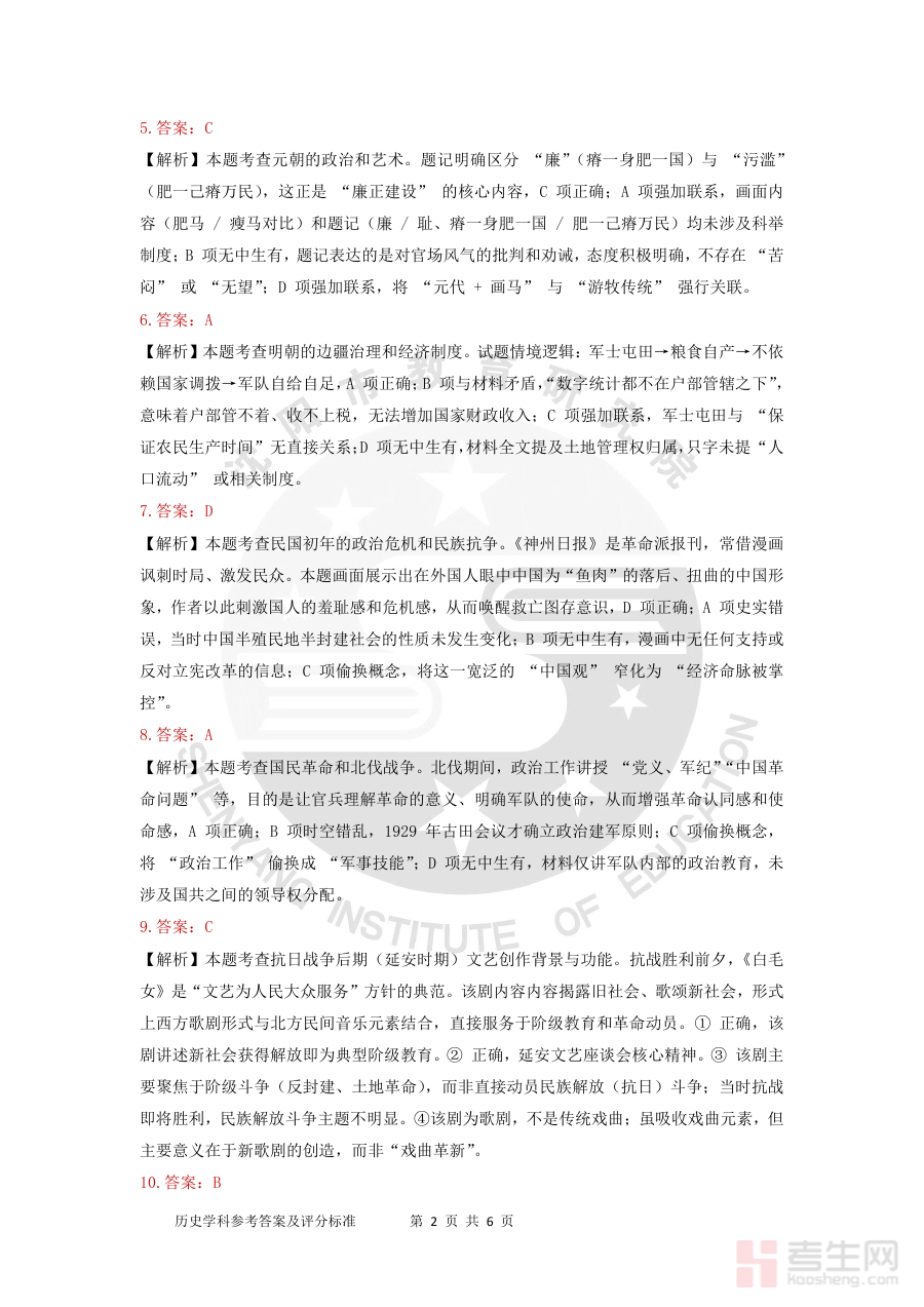 该资料的主要用途集中在学情诊断与备考规划方面,通过参考答案内容,使用者可清晰把握本次模拟考试中历史学科各知识模块的考查情况,以及自身或教学对象在历史知识掌握、解题思路运用等方面的实际表现与差距,为后续调整历史复习重点、优化备考策略提供精准的数据支撑与方向指引,同时也可作为阶段学习效果的验证工具,助力及时发现历史学习中的薄弱环节,提升备考效率。