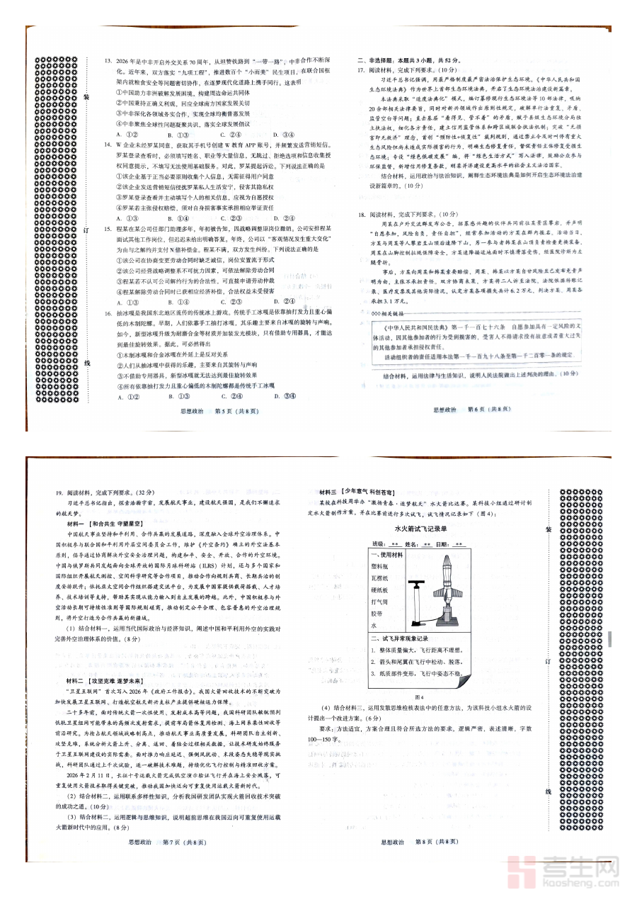 《2026年沈阳二模政治试题》是2026年度沈阳市普通高中毕业年级第二次模拟考试的政治学科官方测试资料,属于区域内具有权威性的阶段性学业评价载体,能够精准体现当地政治学科教学的阶段性目标与命题导向,为相关备考主体提供针对性的参考依据。