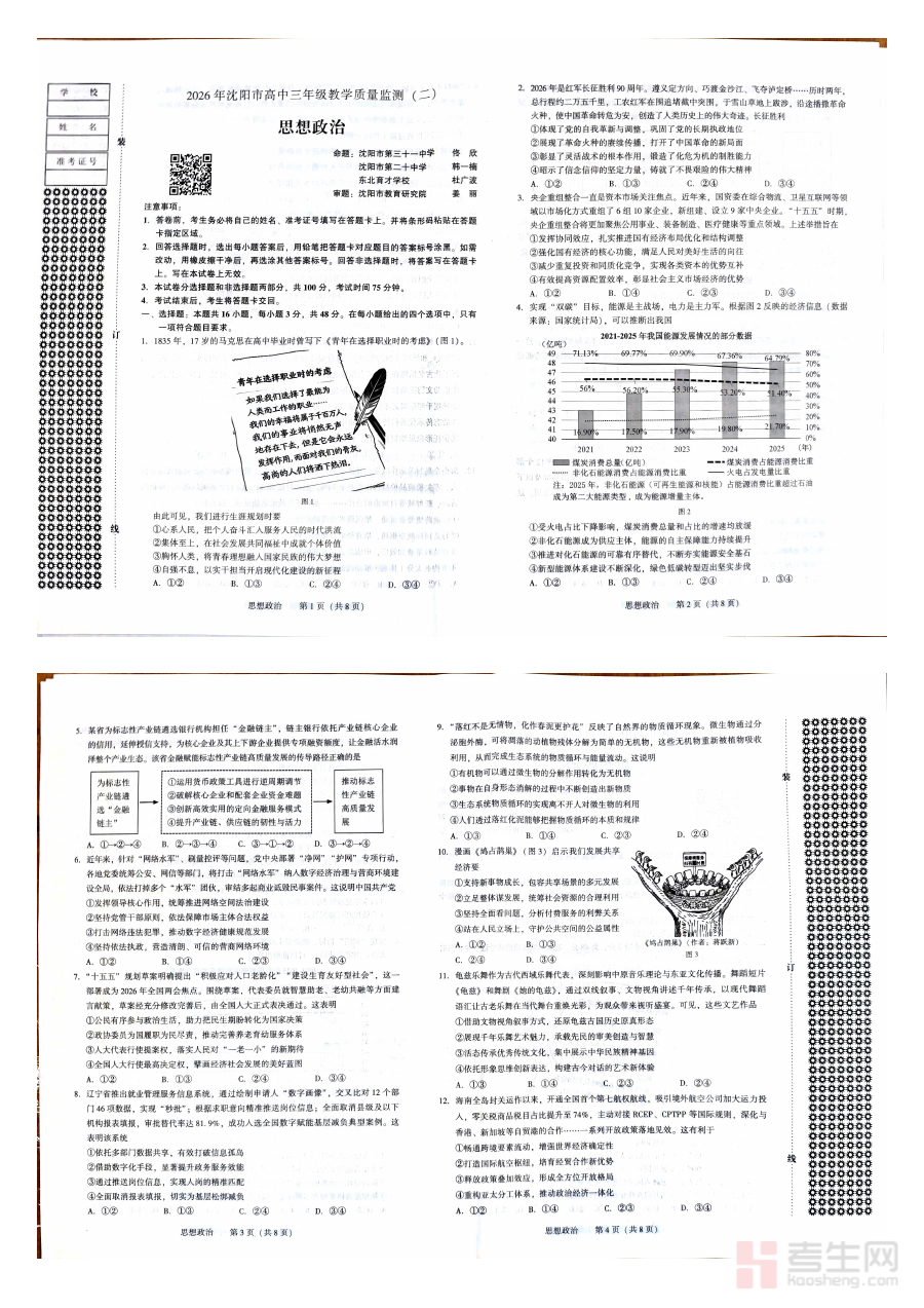 此试题主要适用于2026届沈阳市高三年级学生及政治学科教师群体。对于学生,通过完成试题可实现学习效果的阶段性评估,及时定位知识薄弱环节并进行针对性补强;对于教师,可依托试题开展教学质量检测,优化备考策略与复习节奏,切实提升复习效率,为师生共同应对高考关键阶段提供有力支持。