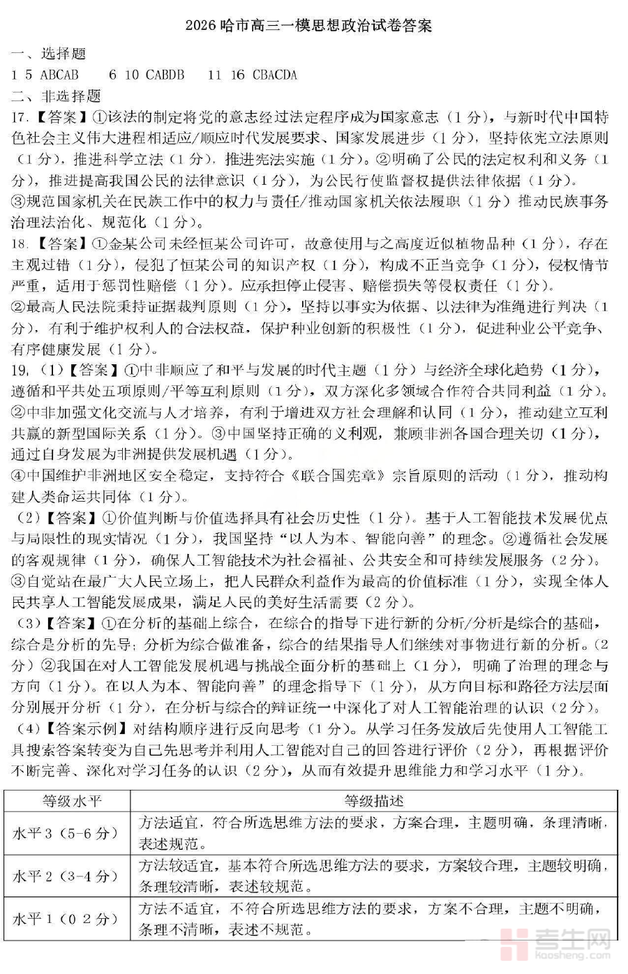 该资料可用于考生完成政治备考练习后的答案核对环节,辅助考生及时发现自身在知识理解、答题逻辑等方面存在的问题。通过对答案的参考,考生能够对自身的备考效果进行初步评估,为后续调整复习重点、优化答题策略提供依据,支持备考过程中的动态调整与完善。