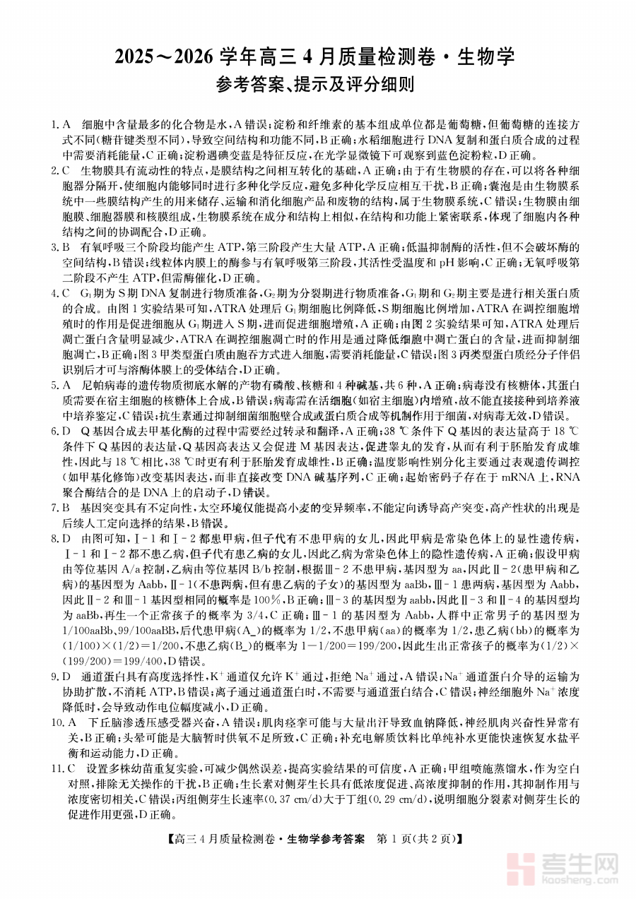 《山西省卓越联盟2025~2026学年高三4月质量检测卷 生物答案》是山西省卓越联盟在2025至2026学年面向高三年级开展的4月质量检测考试中生物学科的配套答案资料。该考试属于区域联盟性质的阶段性检测,旨在评估高三学生生物学科的阶段性学习成果与备考进展,而配套答案则为这一检测环节提供了标准化的参考依据,是高三生物备考过程中衔接阶段性复习与下一阶段规划的重要资料载体。