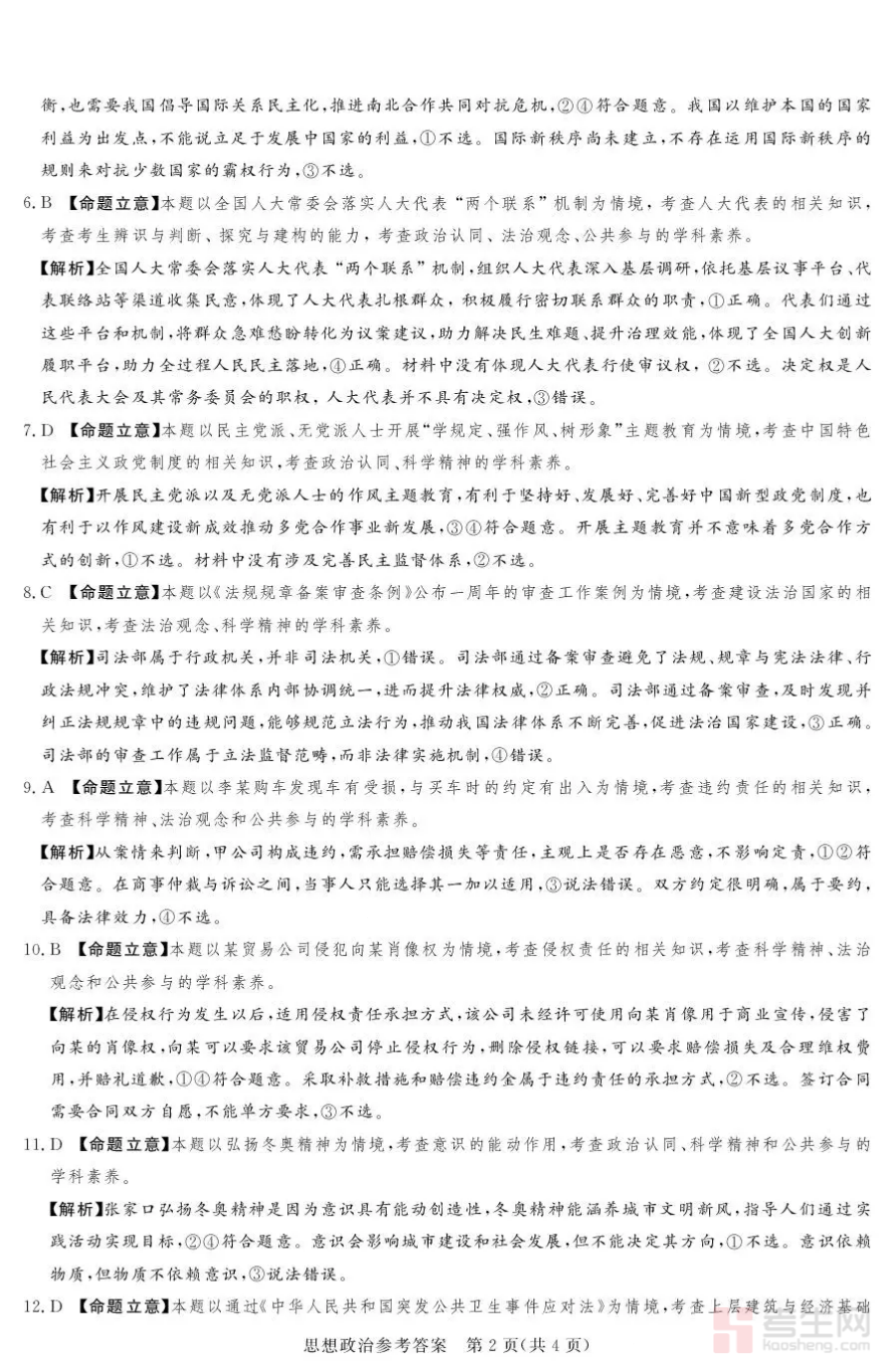 该资料的核心用途在于支撑学情诊断与备考规划工作。教师可借助它高效完成试卷批改,精准分析学生在政治学科的知识掌握短板、能力薄弱环节及共性问题,为后续教学内容调整和针对性辅导提供数据支撑;学生通过对照答案能及时核对答题结果,明确错误点与不足,调整学习计划以优化知识体系构建。同时,它也为学校或教研组开展阶段教学质量评估提供统一参考标准,助力把握高三政治学科的教学进度与整体效果。