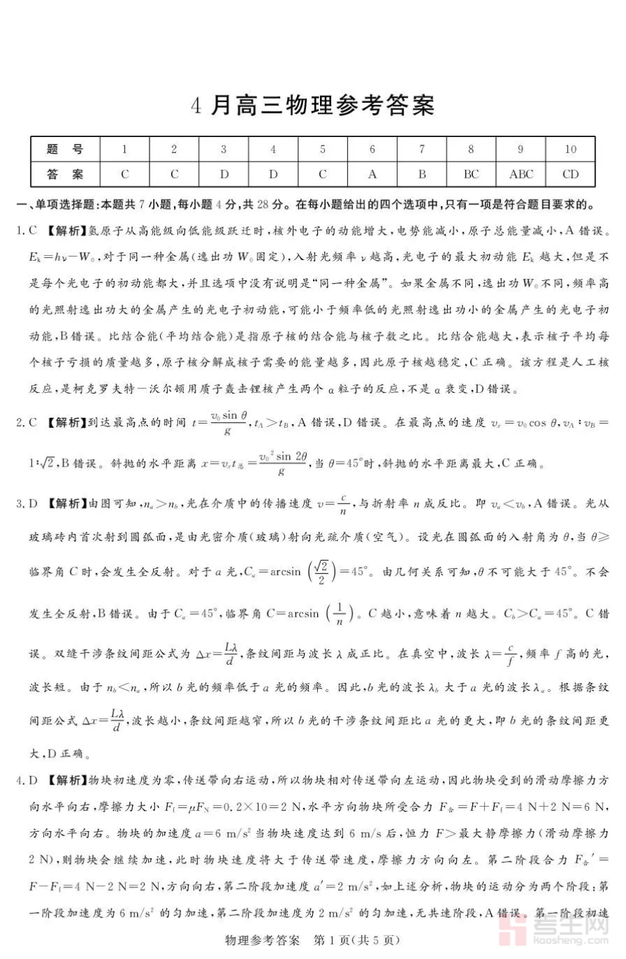 该资料的核心用途在于辅助高三师生完成对四月阶段检测物理科目的结果验证与分析工作,帮助师生快速定位学习过程中的薄弱环节,为后续的复习计划调整和知识点巩固提供清晰方向支持。