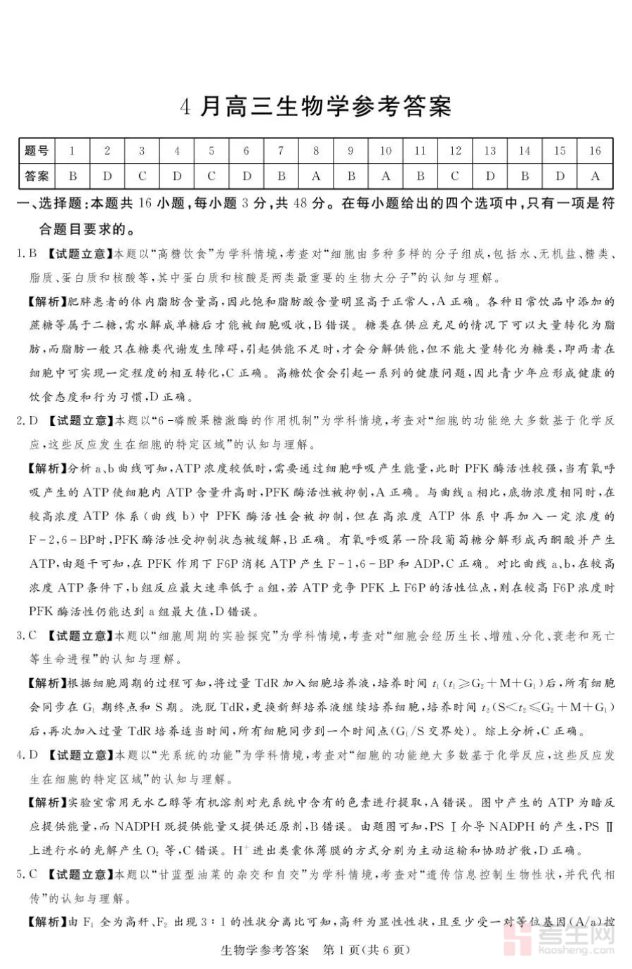 该资料主要适用于2025-2026学年就读高三的学生群体以及从事高三生物教学的教师群体对于学生而言它是阶段检测后自我复盘查漏补缺巩固知识体系的关键工具对于教师而言它是开展阶段性教学效果分析优化教学计划提升教学针对性的重要参考其价值在于通过阶段性检测答案呈现助力师生精准把握高三下学期四月关键备考阶段学习动态为后续冲刺阶段生物复习筑牢基础切实提升整体备考效率与质量
