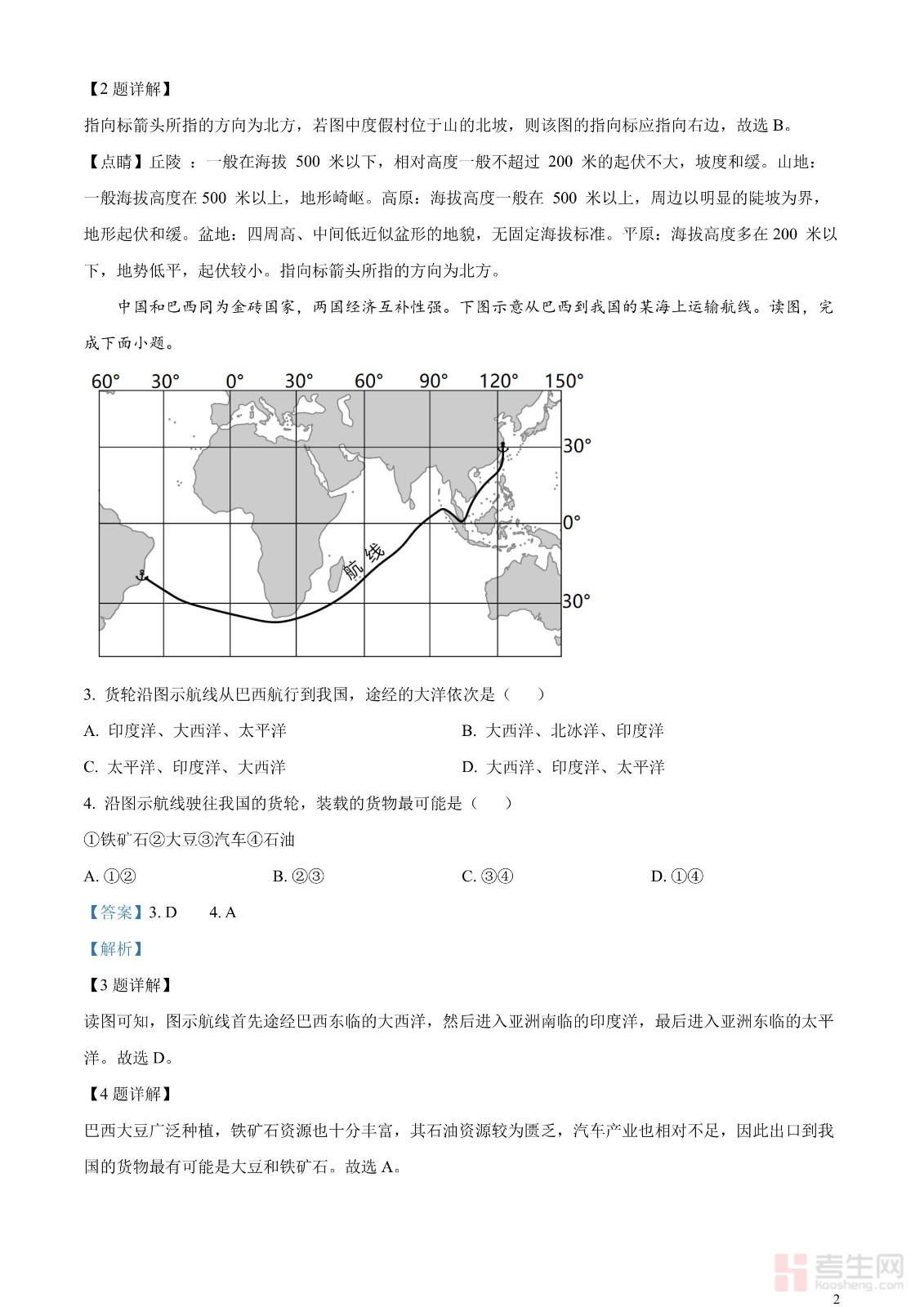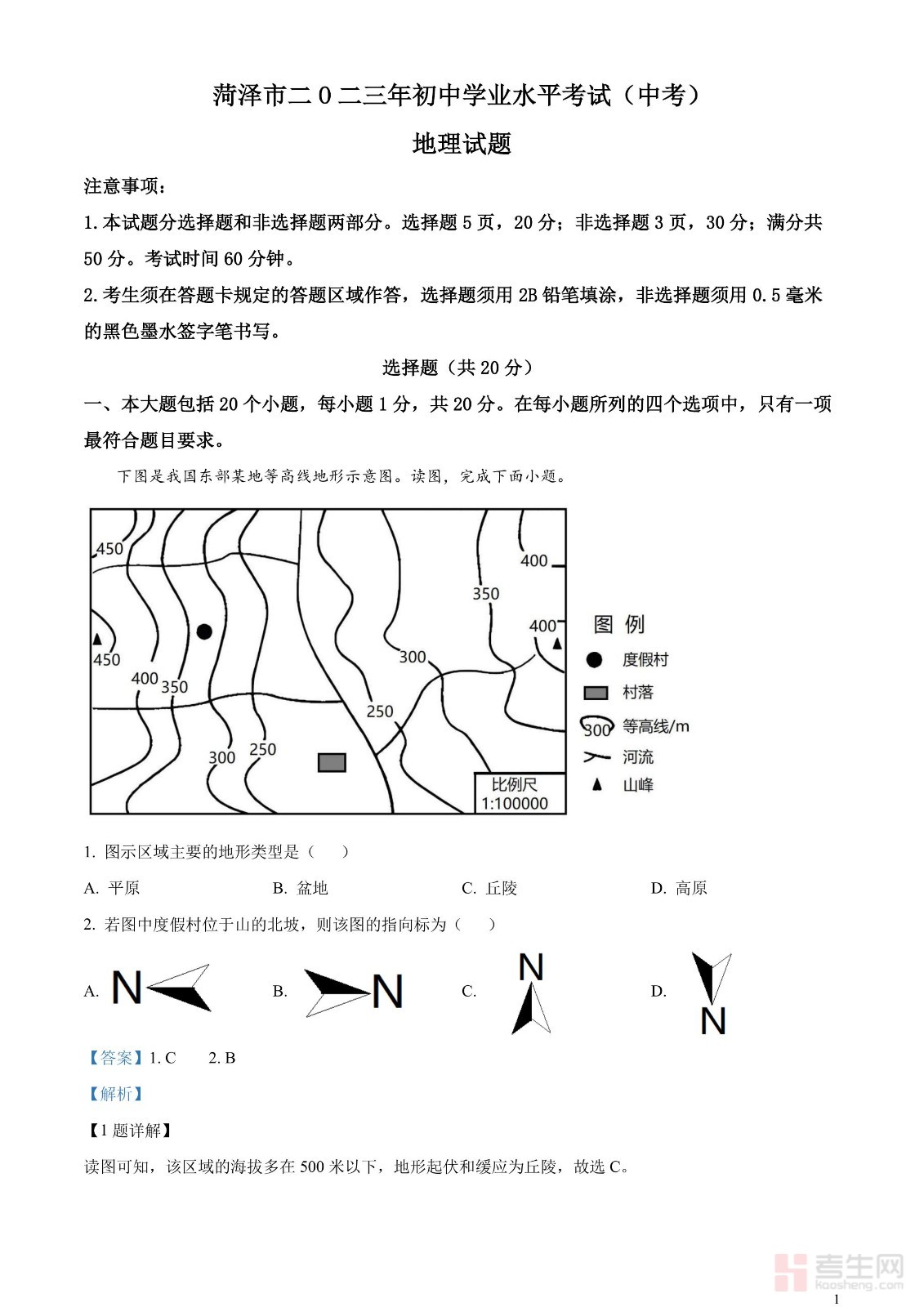 2023年贵州省黔东南州中考地理真题(原卷版)