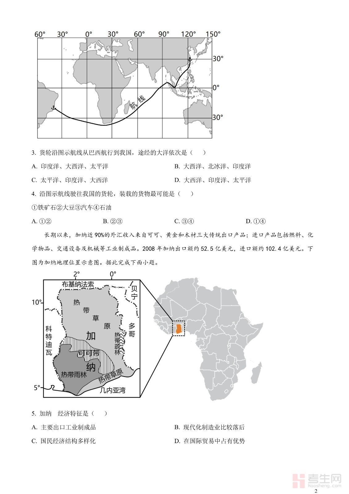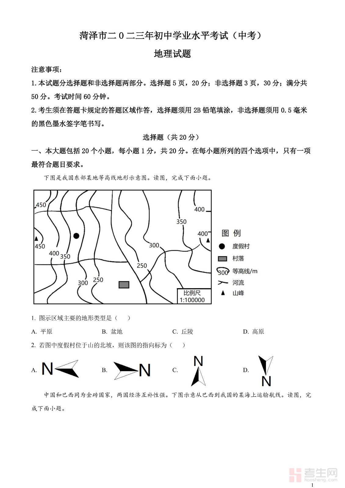 2023年山东省菏泽市中考地理真题 (原卷版)