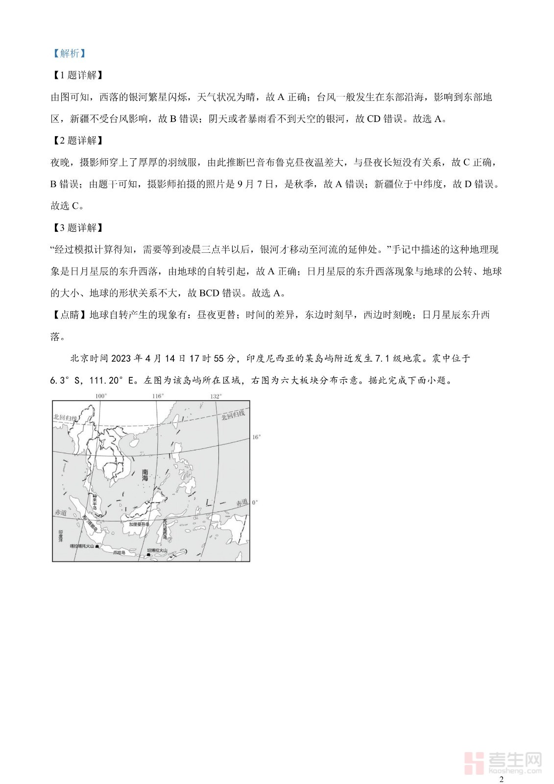 2023年贵州省黔东南州中考地理真题(原卷版)