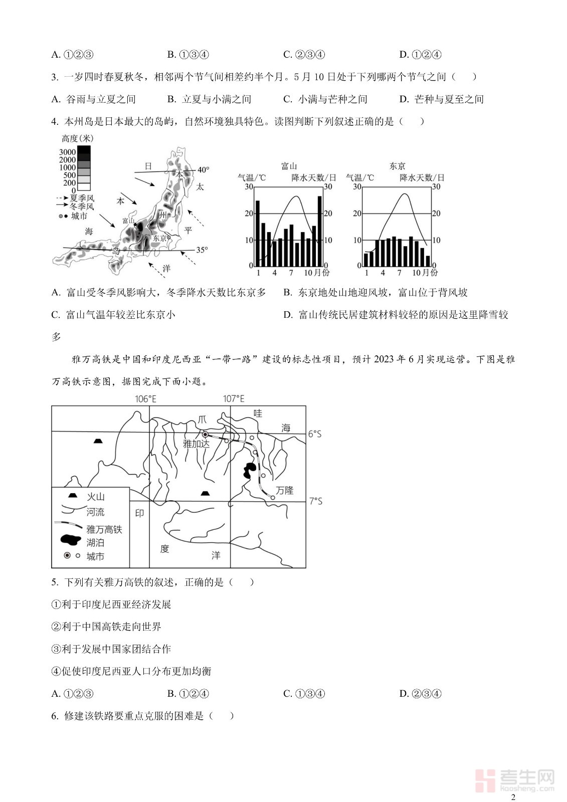 2023年北京市中考地理真题(原卷版)