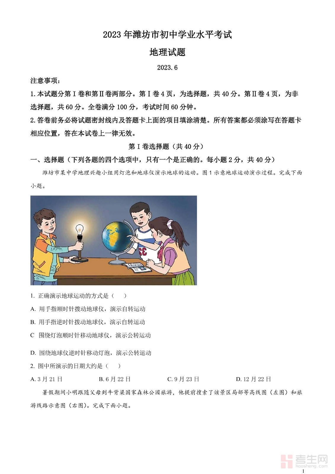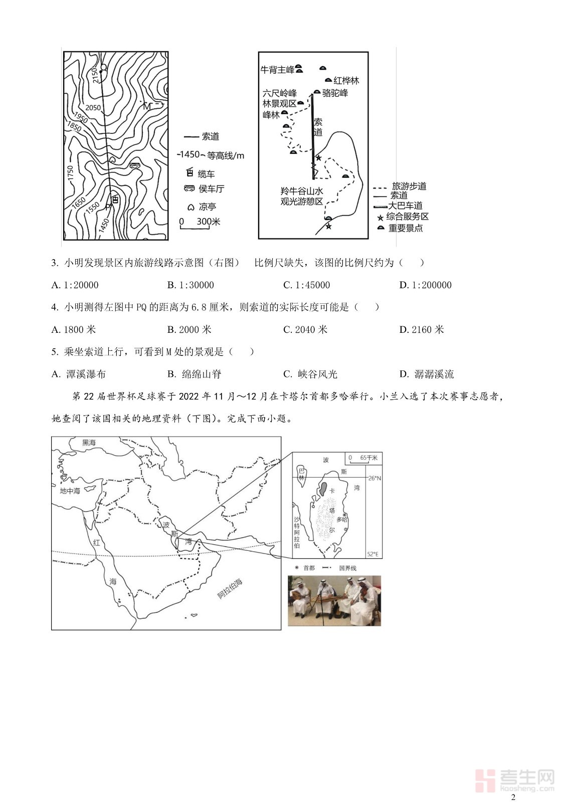 2023年贵州省黔东南州中考地理真题(原卷版)