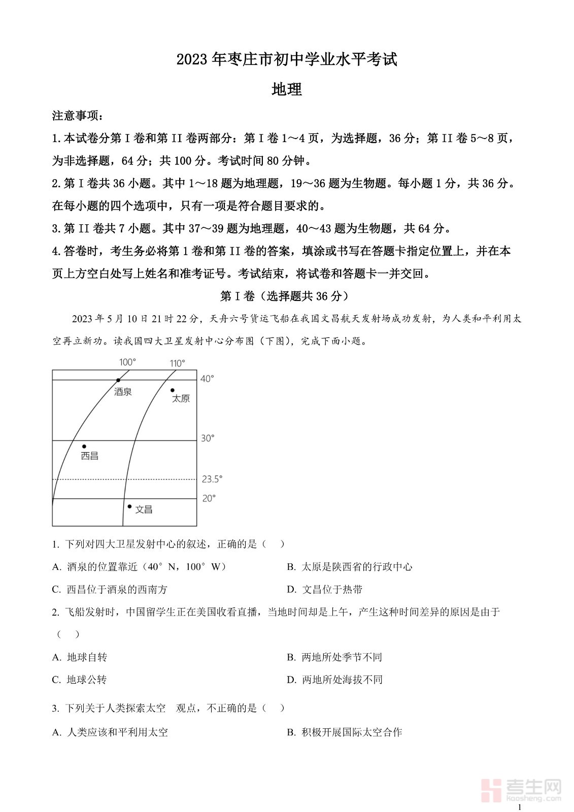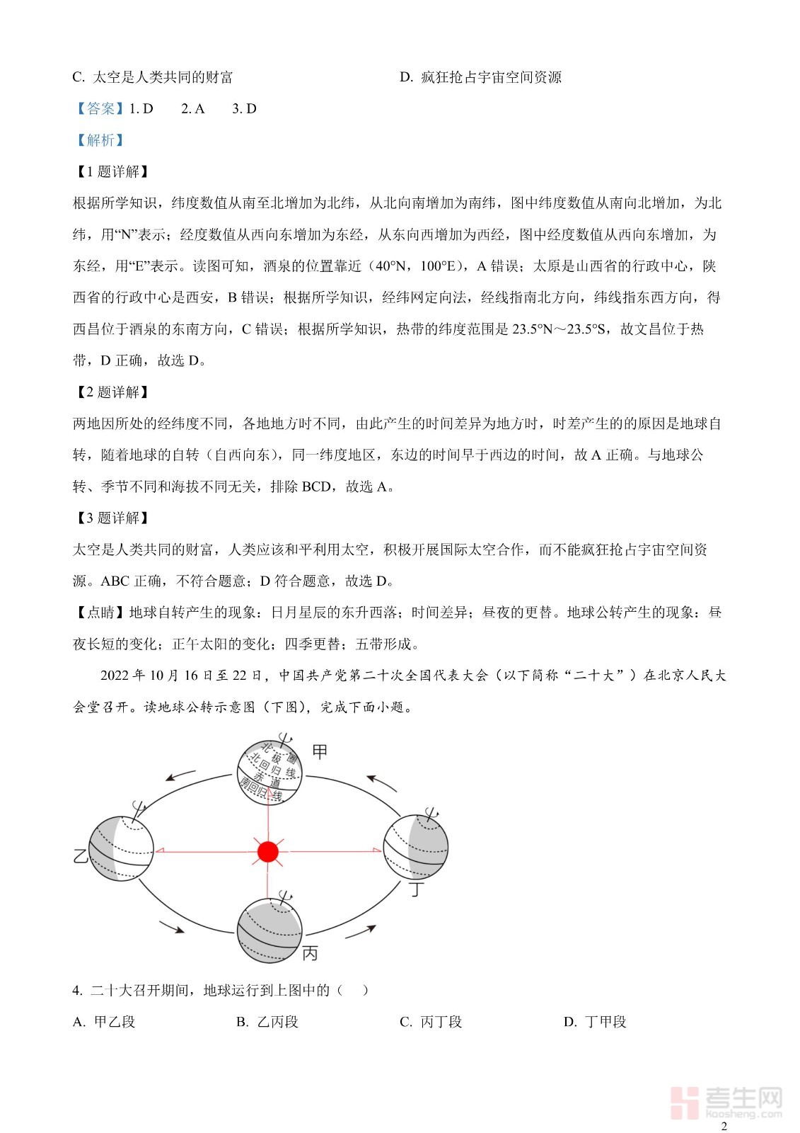 2023年贵州省黔东南州中考地理真题(原卷版)
