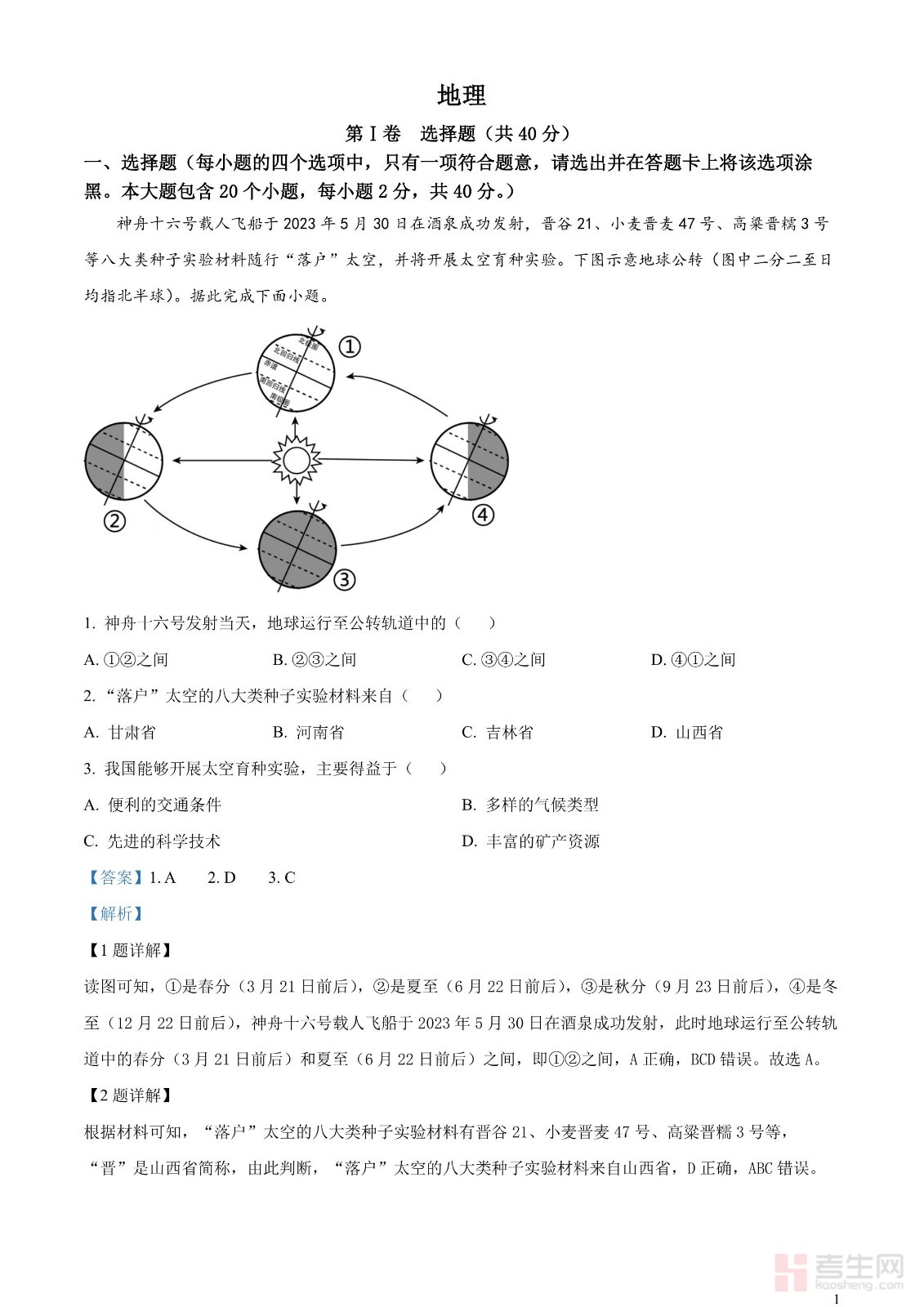 2023年中考地理真题