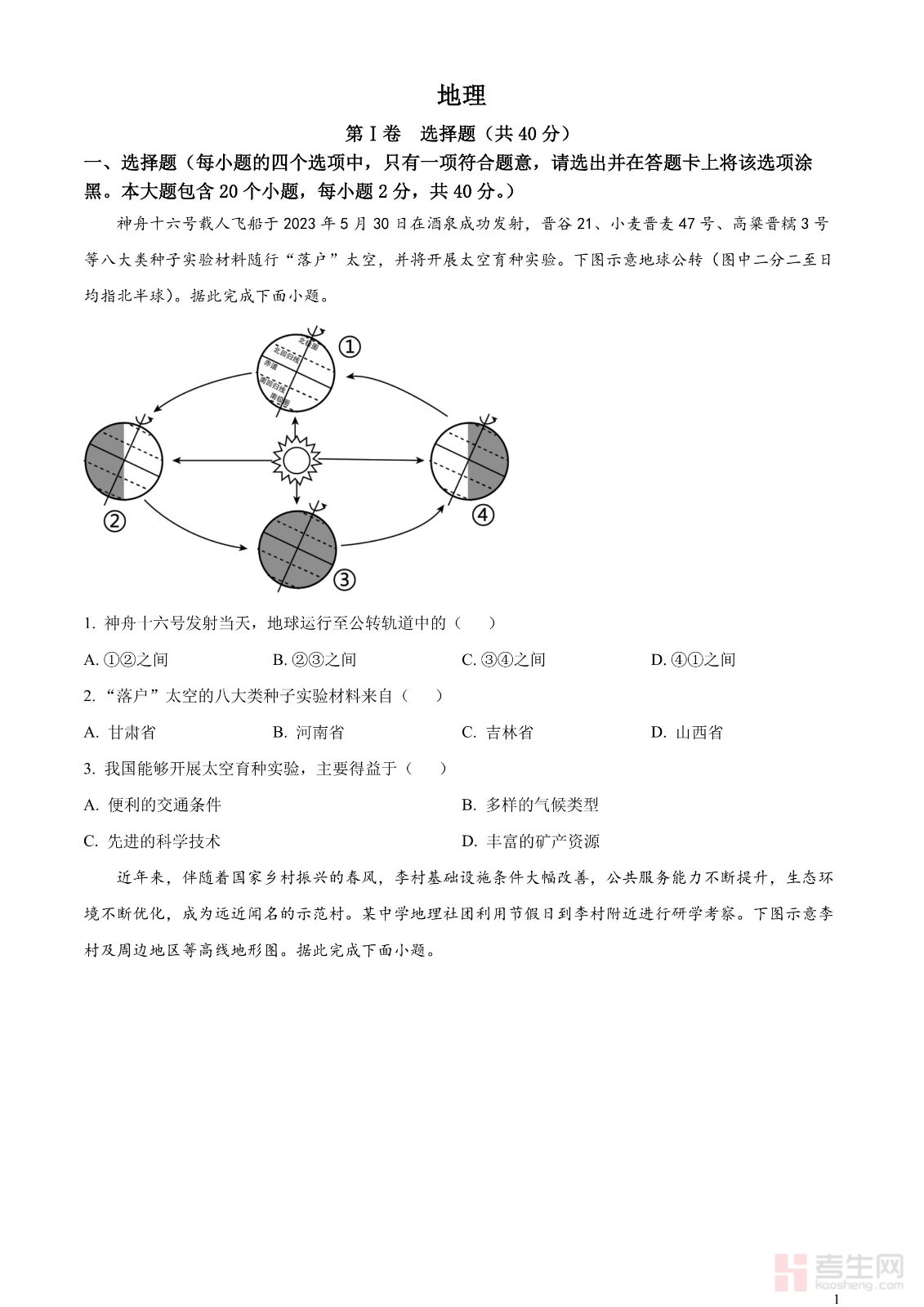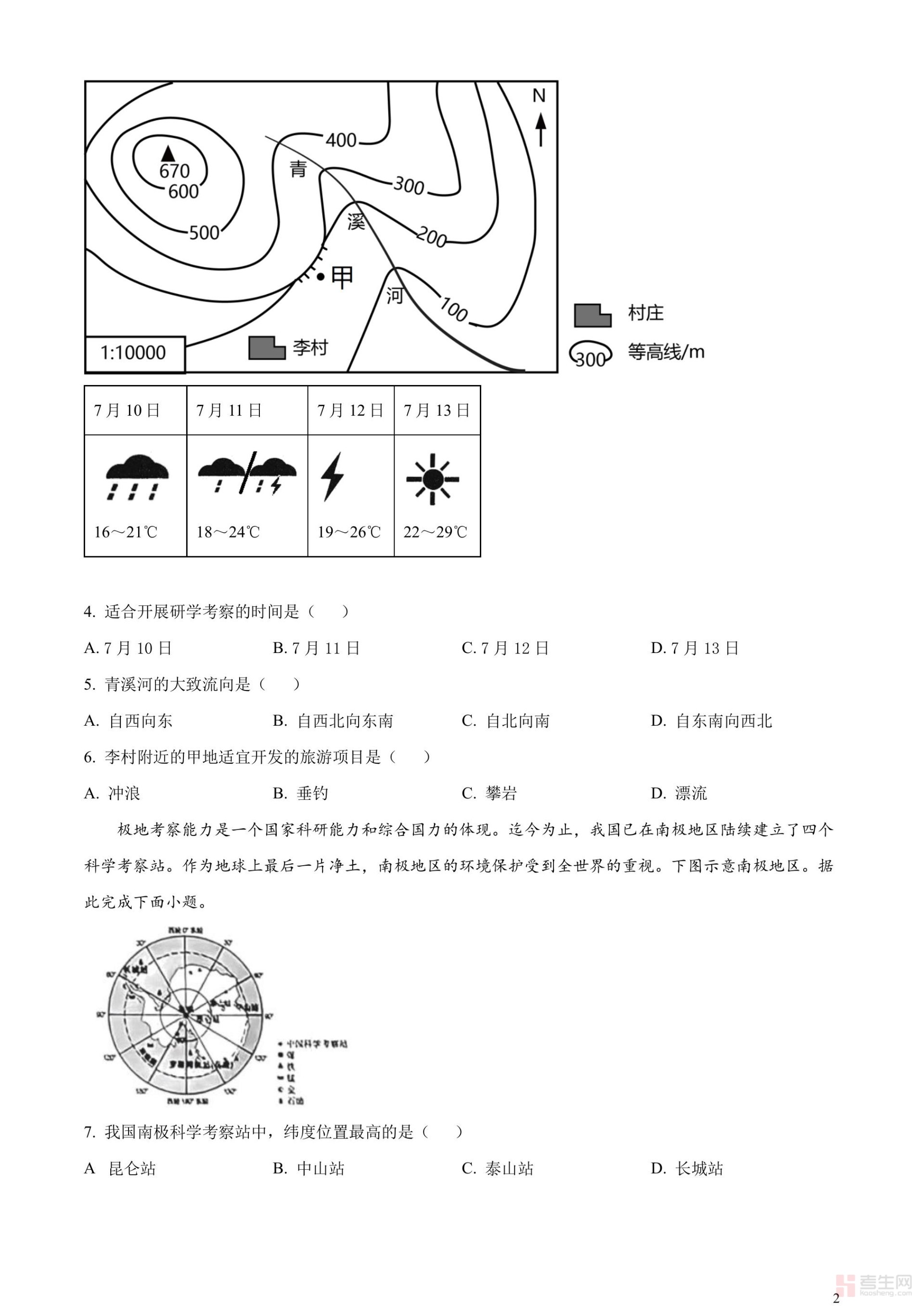 2023年贵州省黔东南州中考地理真题(原卷版)