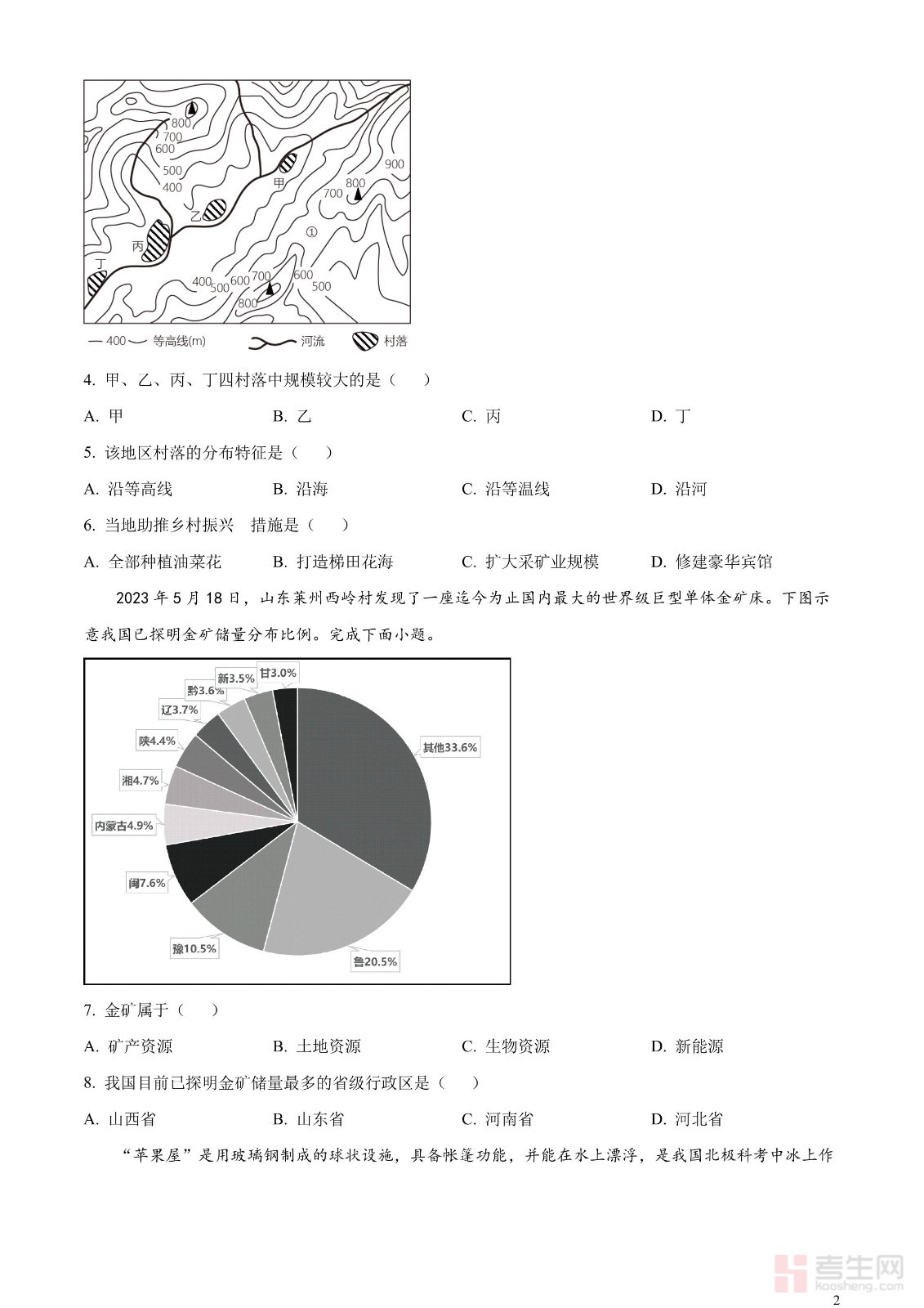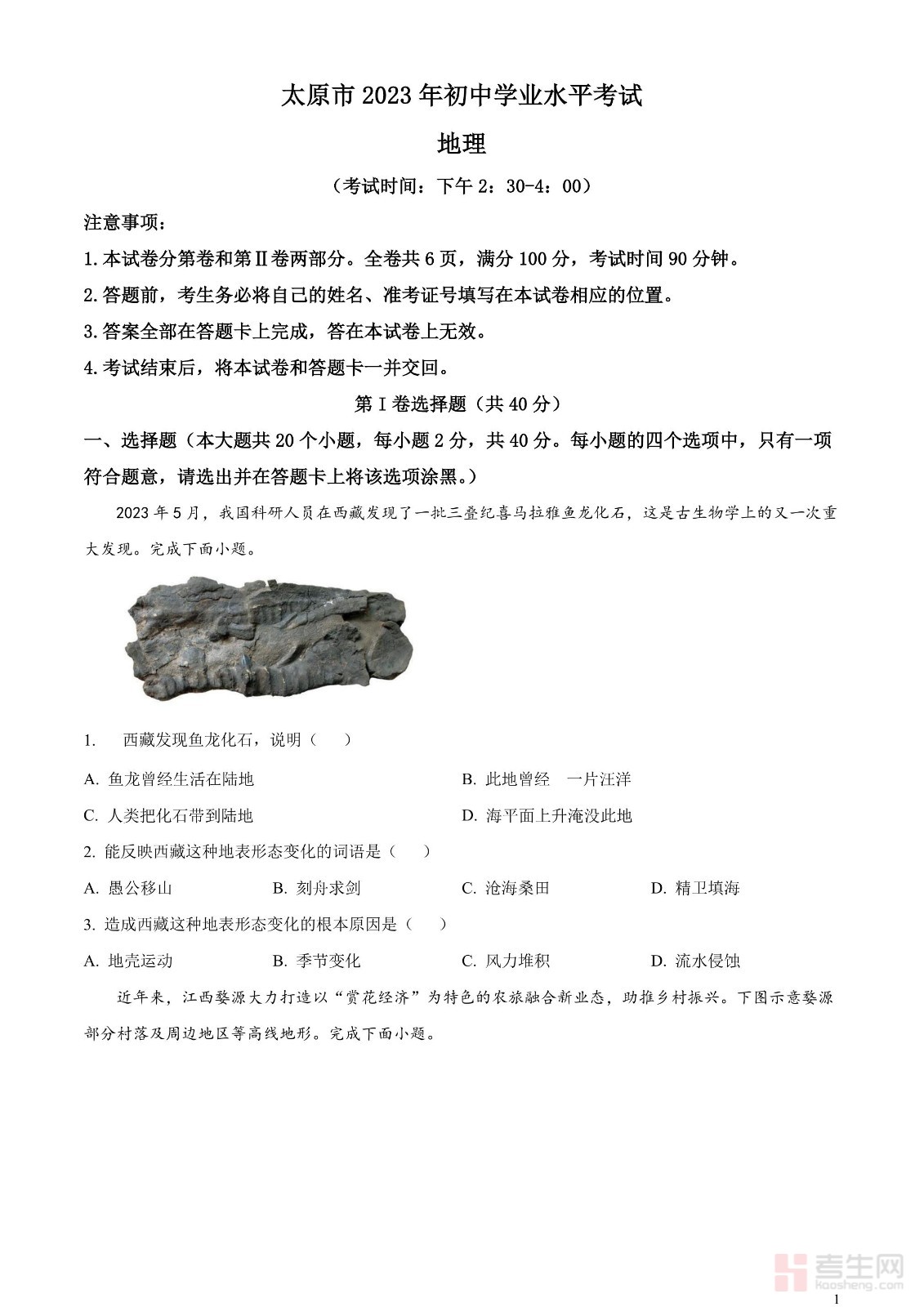 2023年贵州省黔东南州中考地理真题(原卷版)