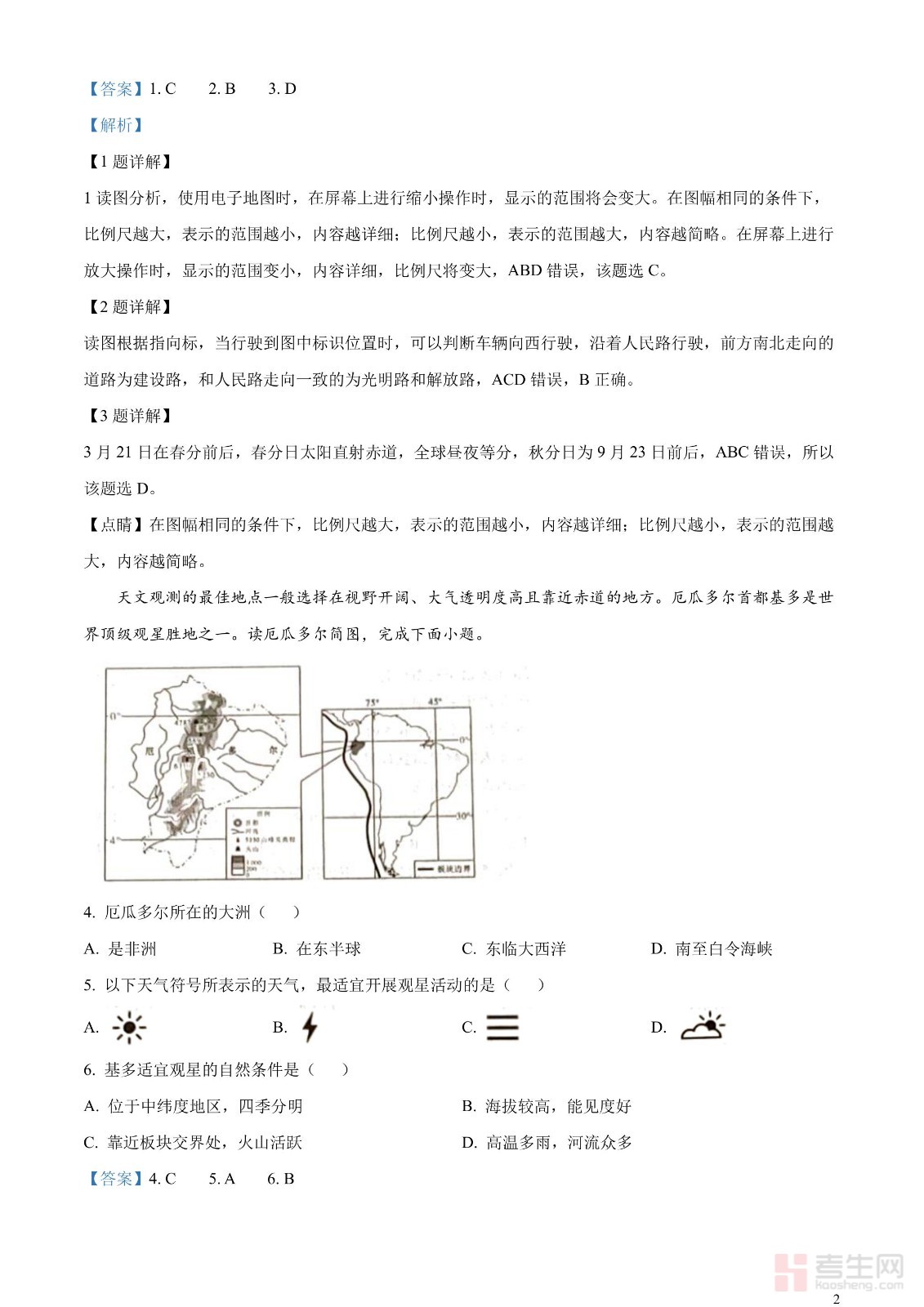 2023年贵州省黔东南州中考地理真题(原卷版)