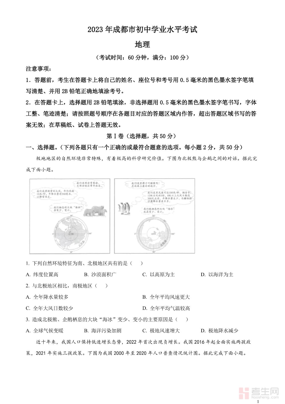 2023年贵州省黔东南州中考地理真题(原卷版)