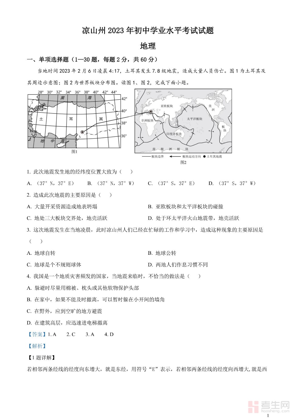 2023年四川省凉山州中考地理真题(解析版)