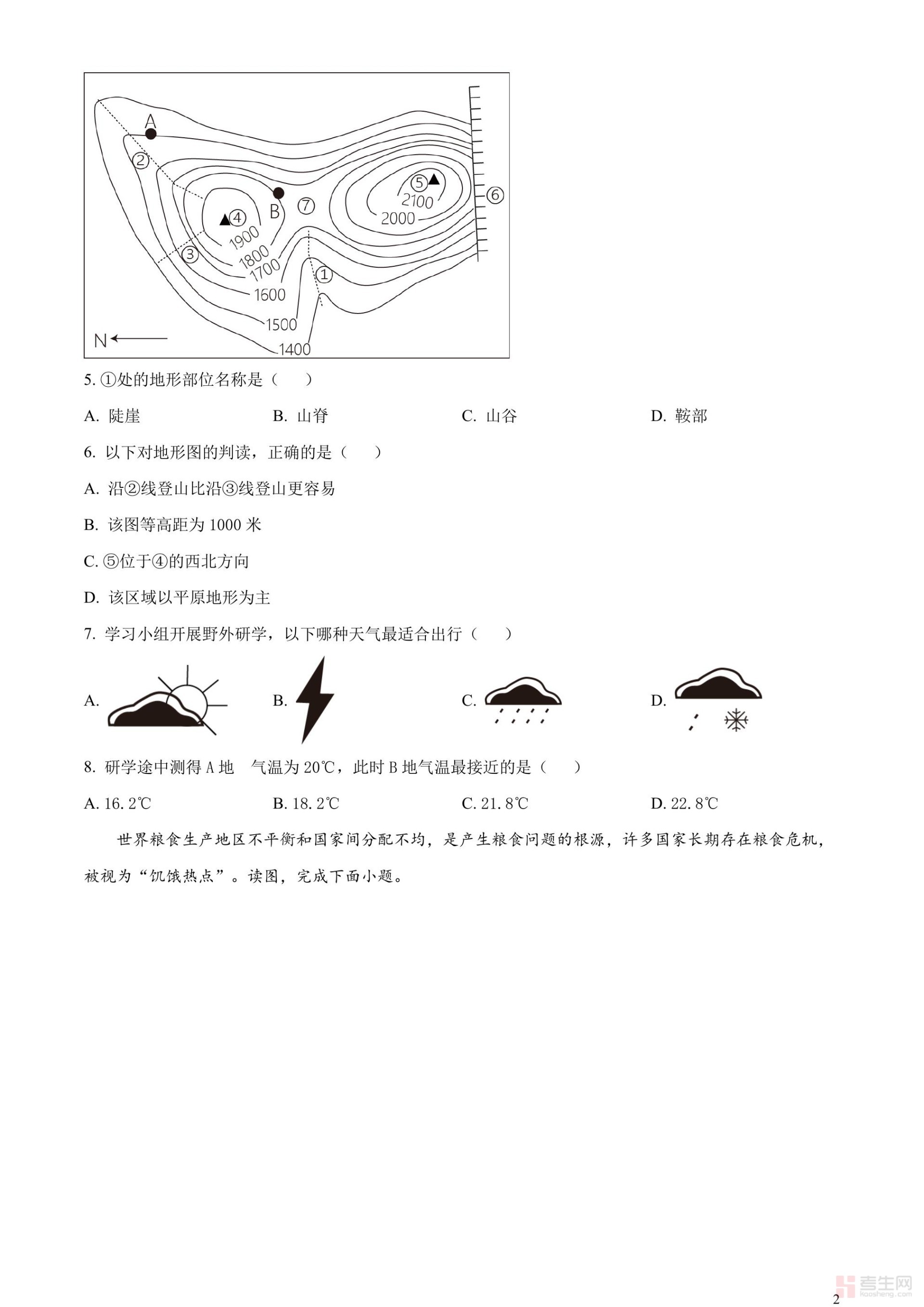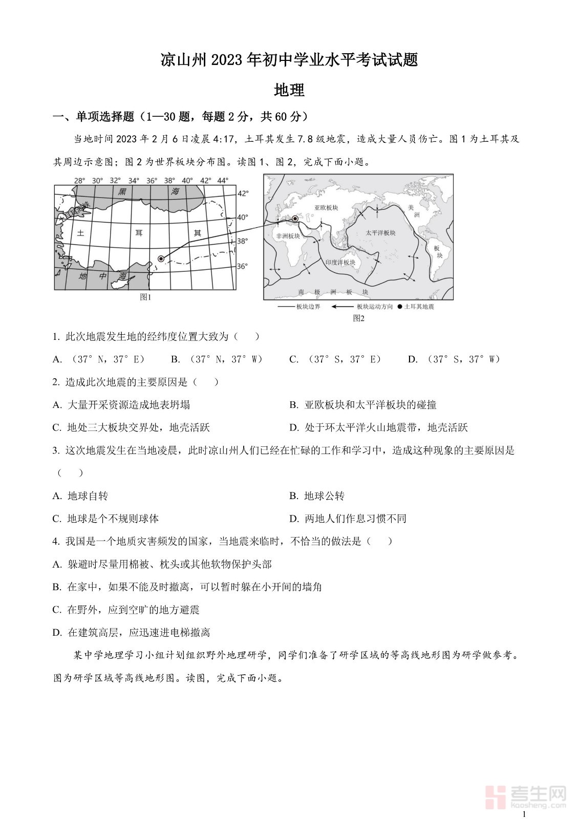 2023年贵州省黔东南州中考地理真题(原卷版)
