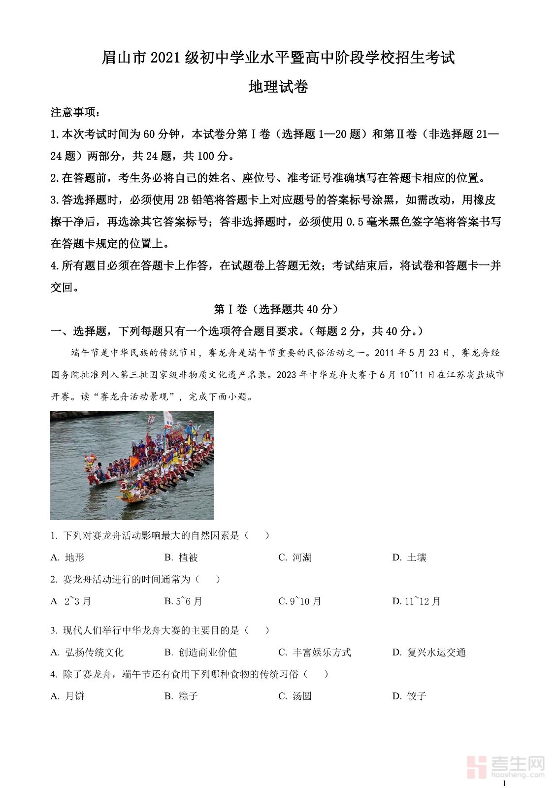 2023年四川省眉山市中考地理真题(解析版)