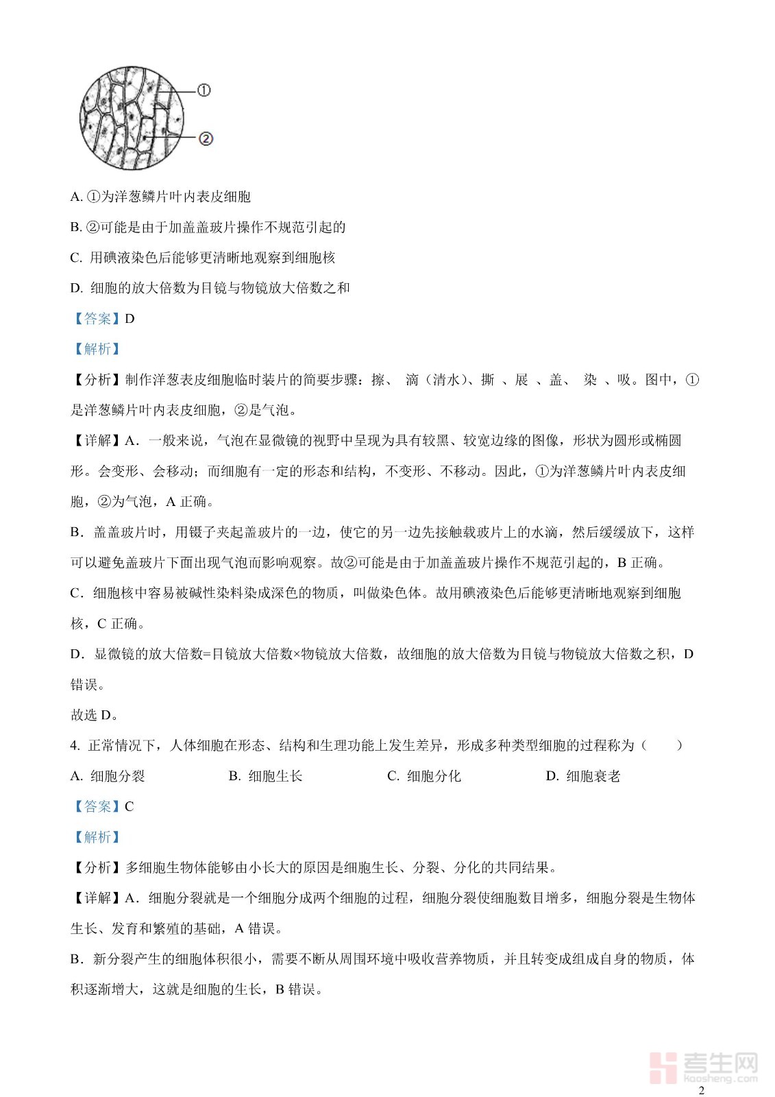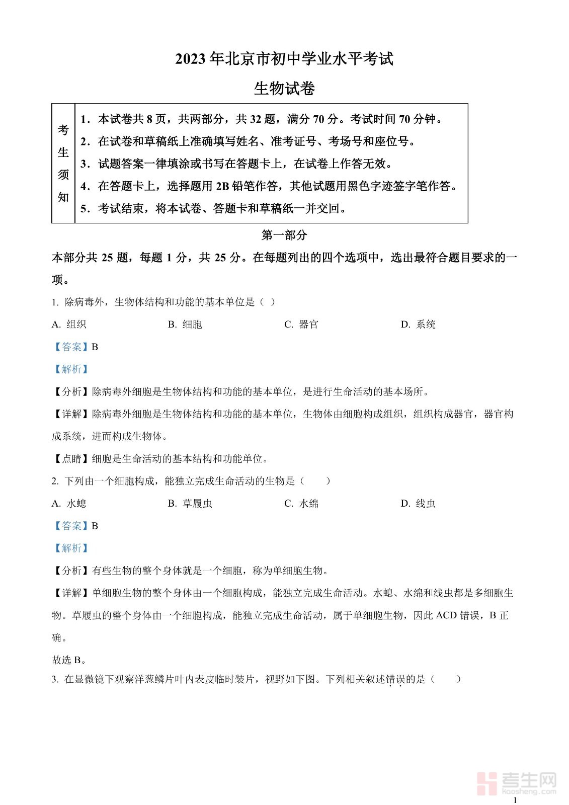 2023年中考生物真题