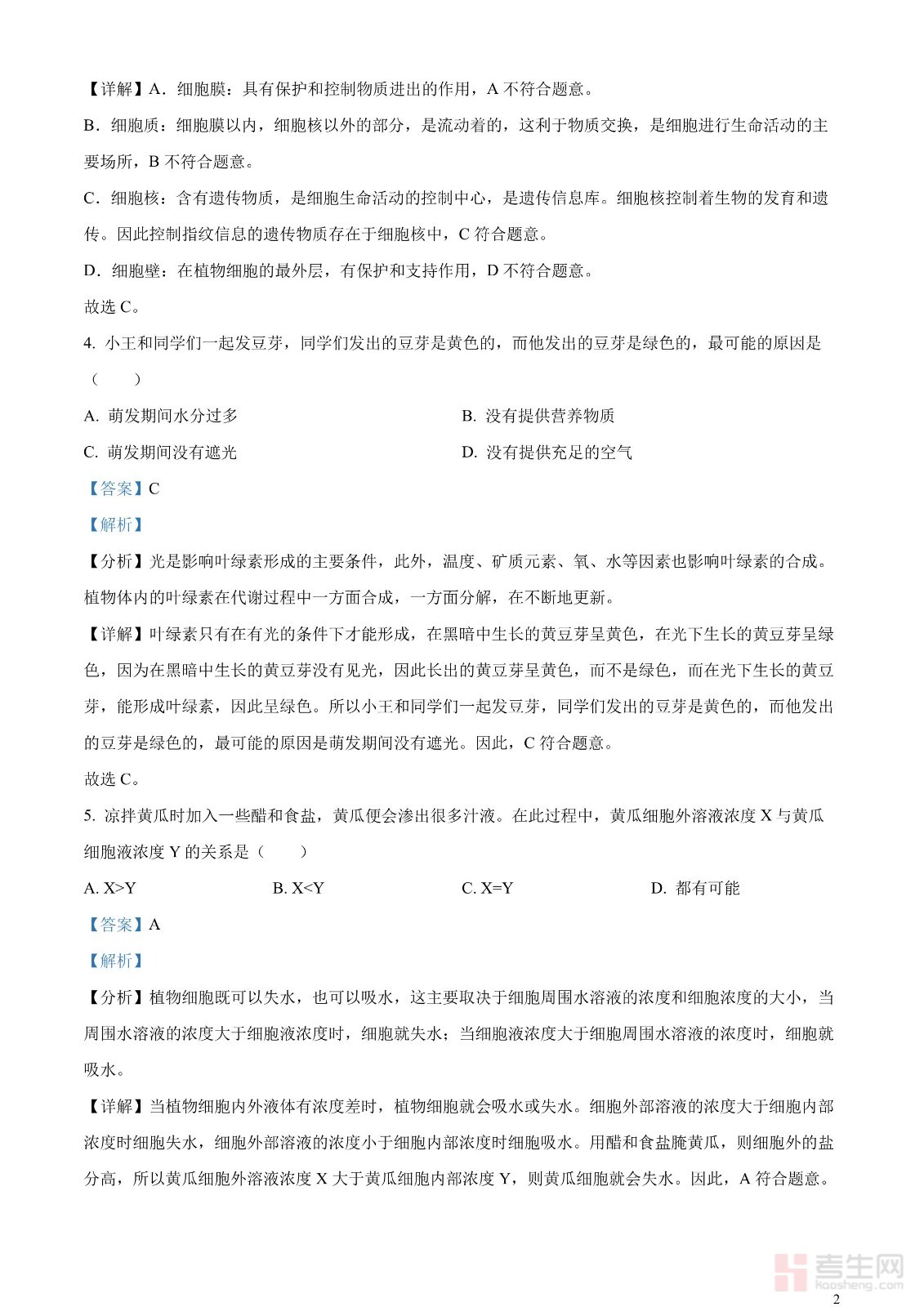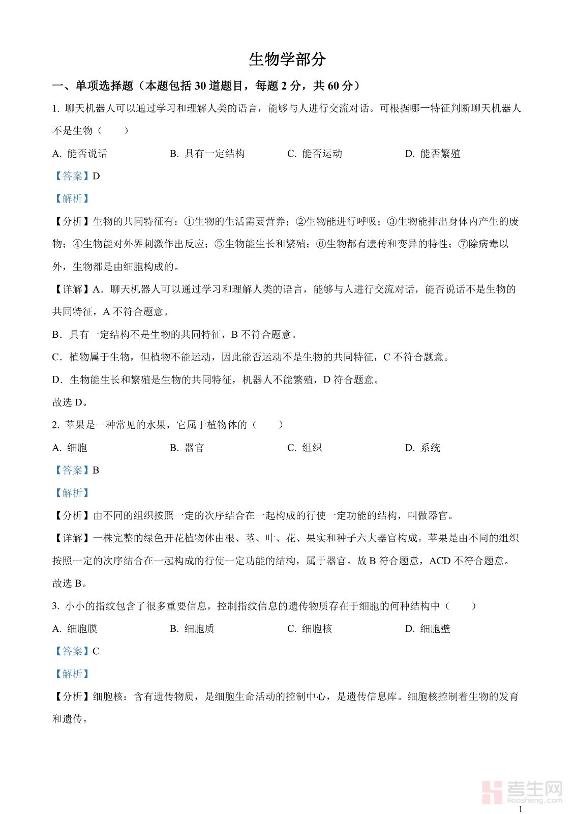 2023年中考生物真题