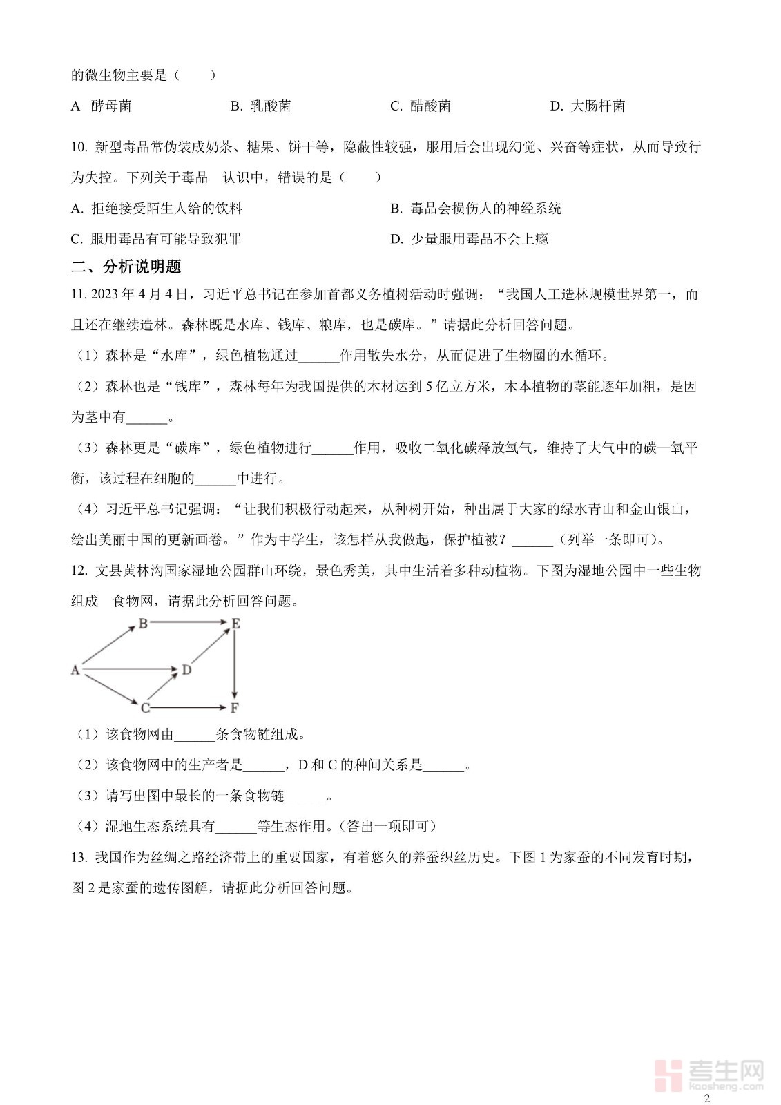 2023年中考生物真题