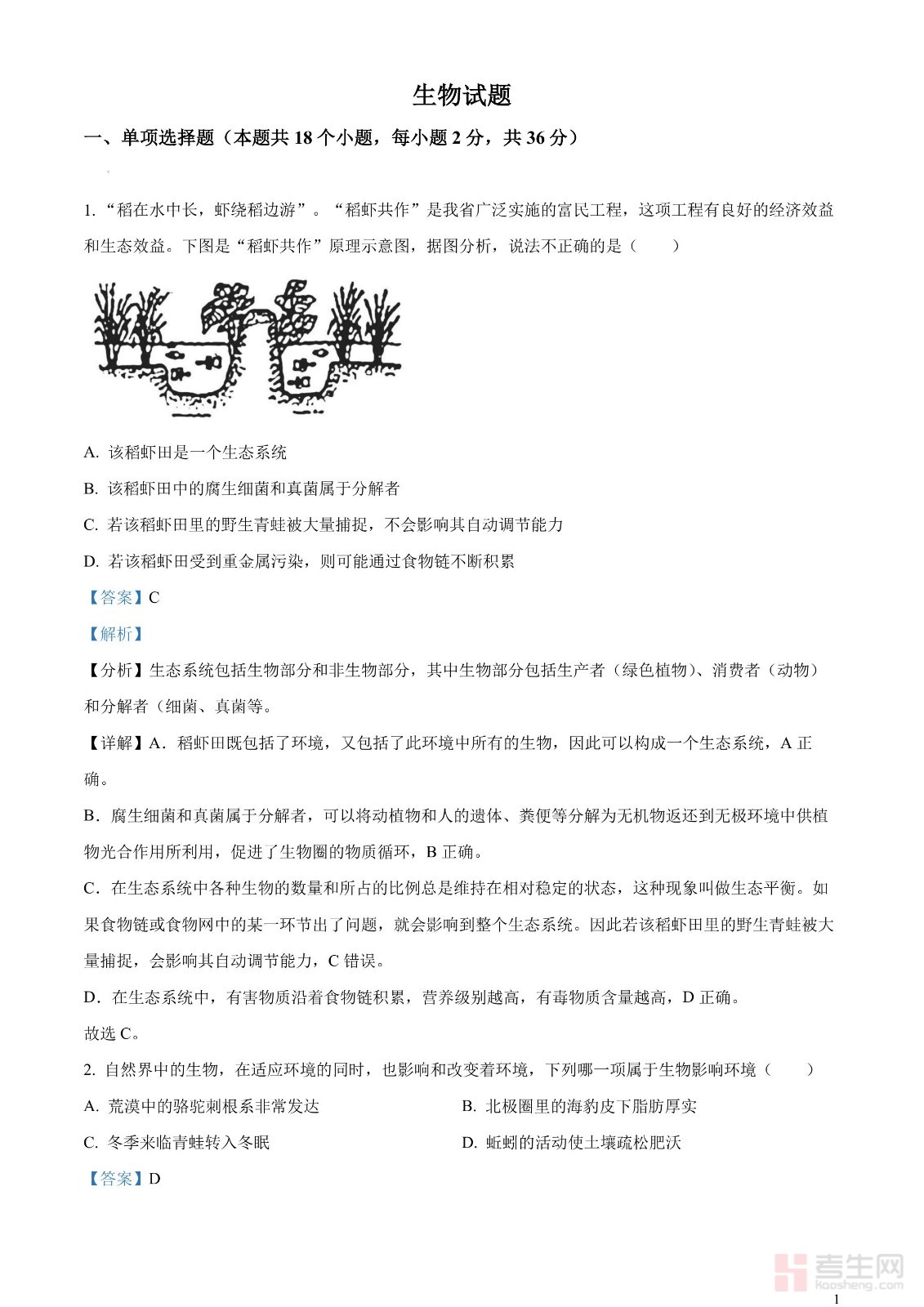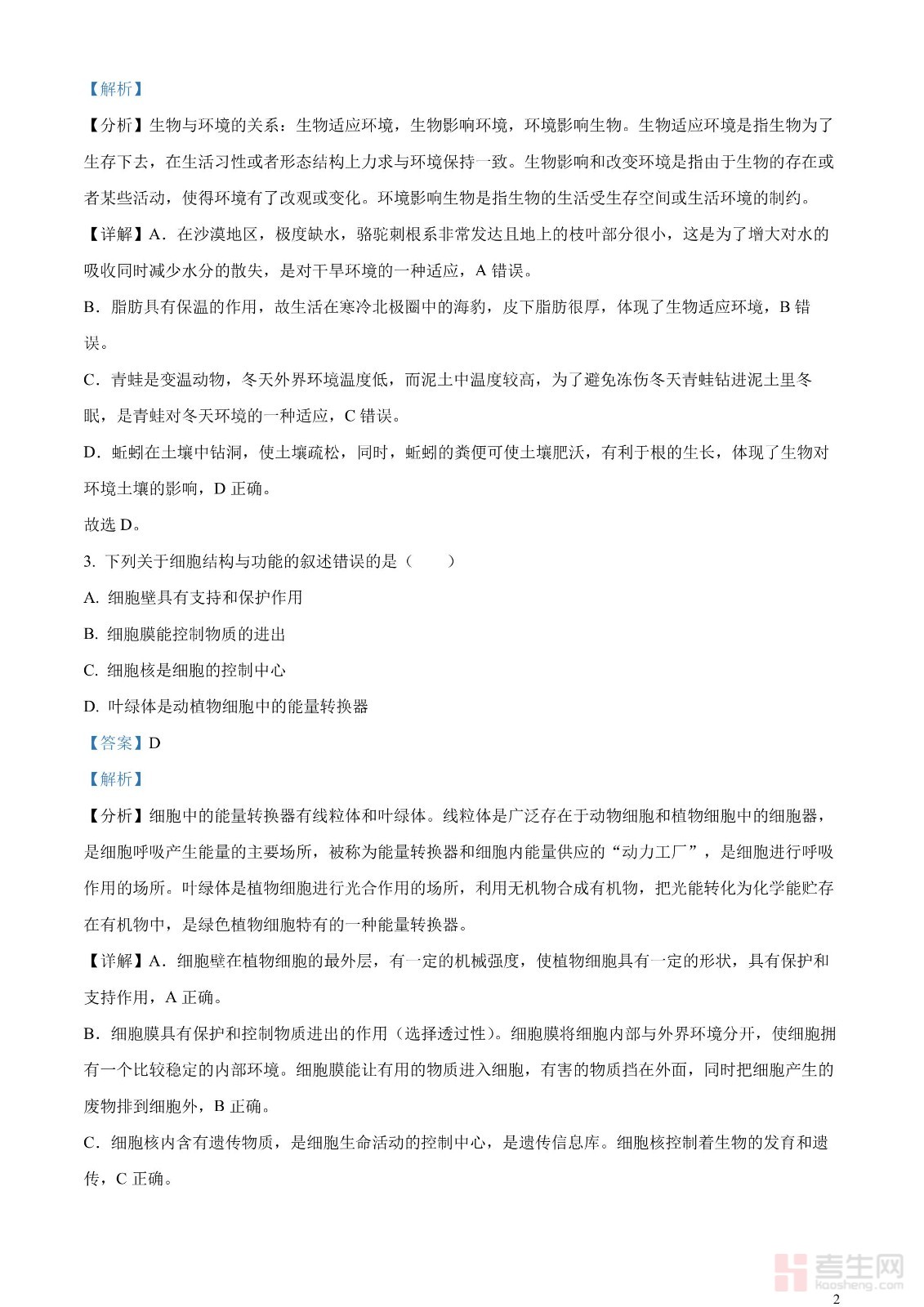 2023年中考生物真题