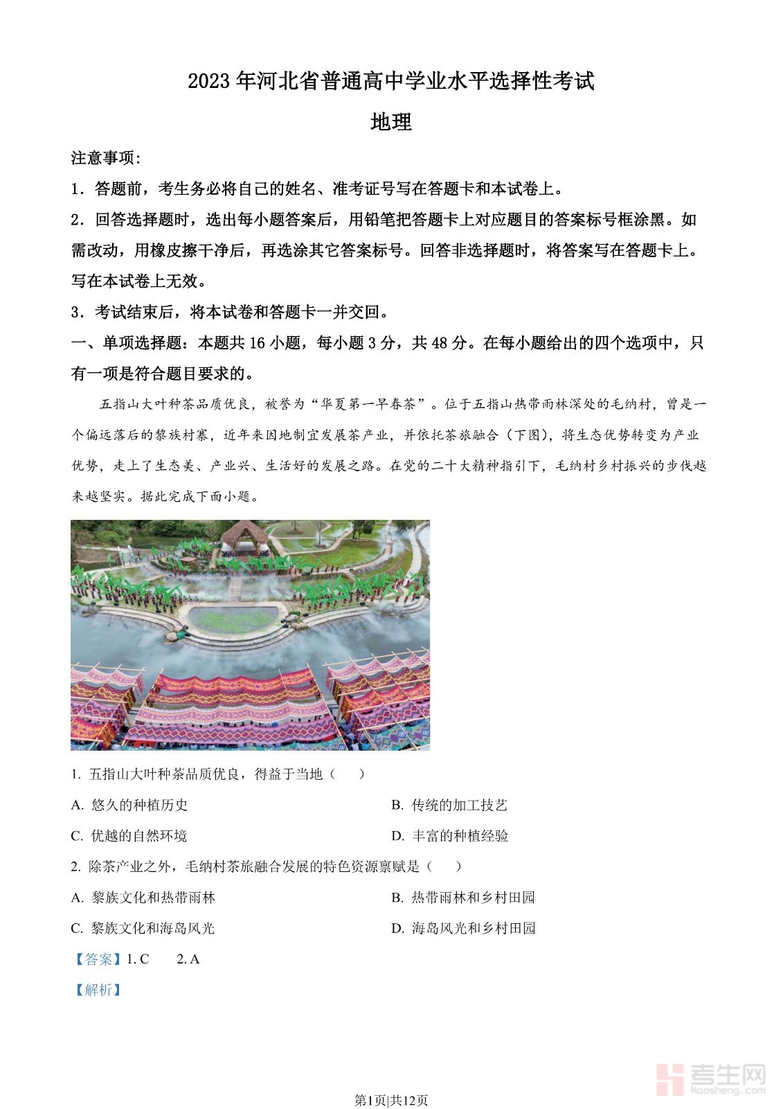 2023年高考地理试卷(全国乙卷)(空白卷)
