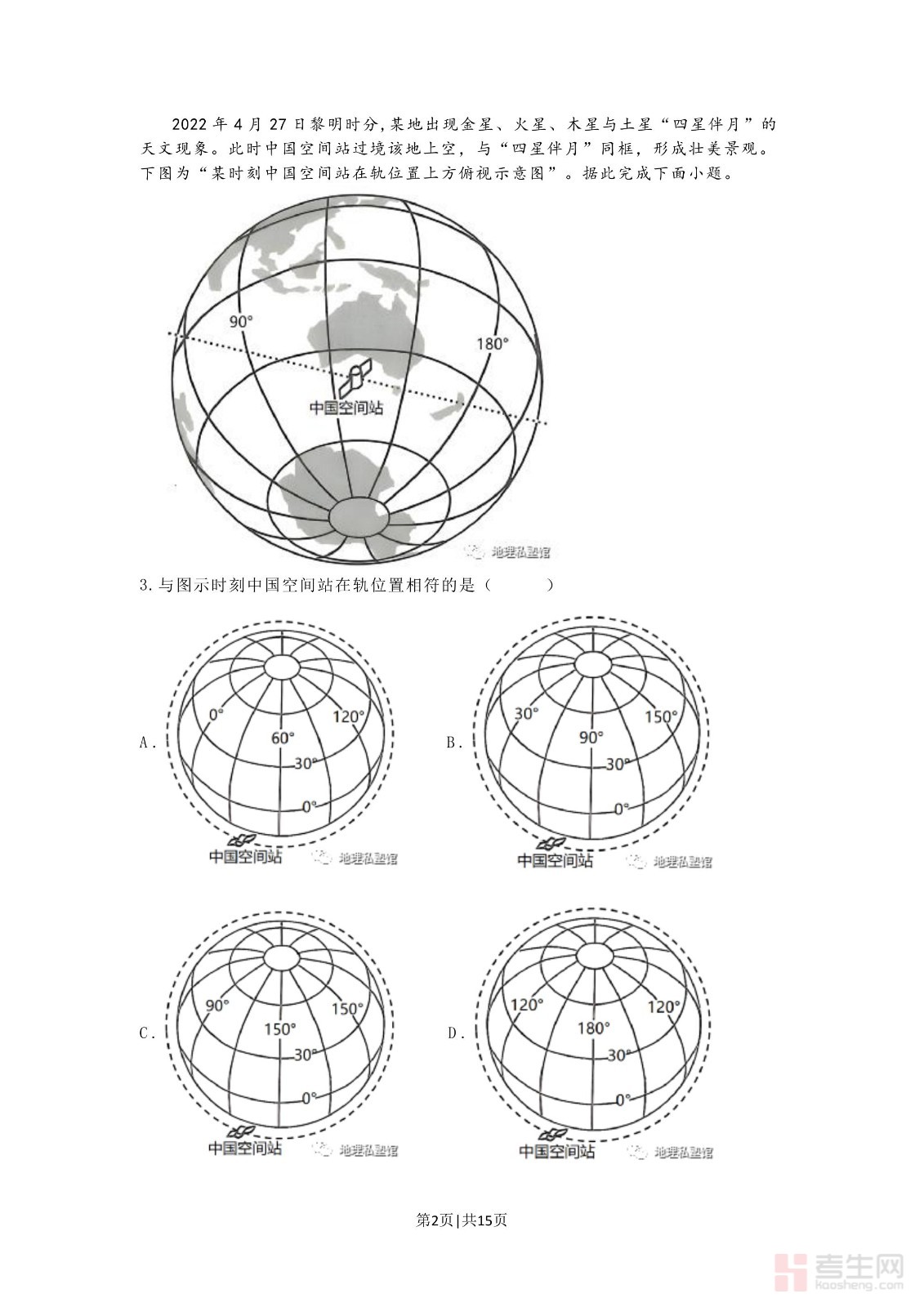 2023年高考地理试卷(全国乙卷)(空白卷)