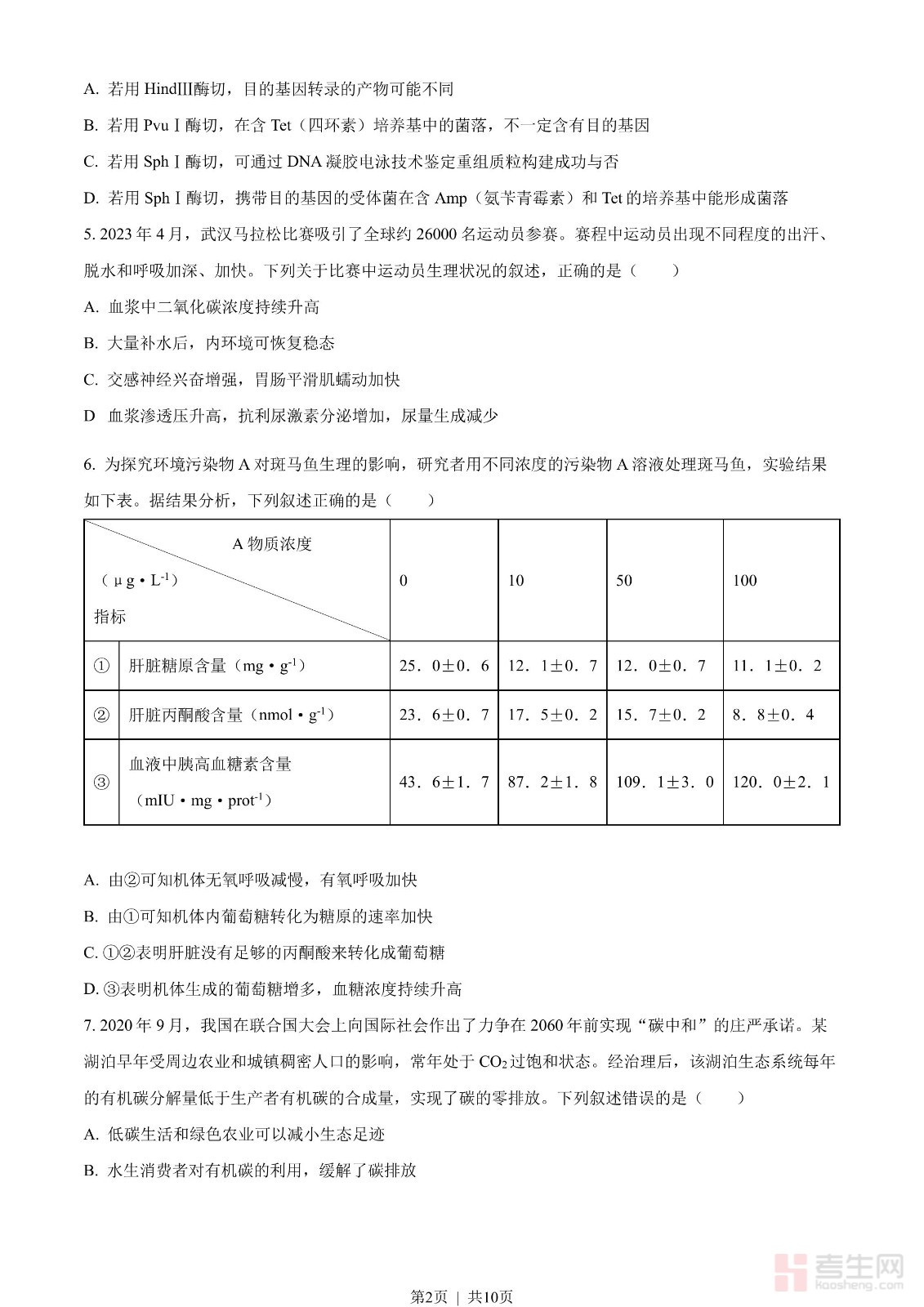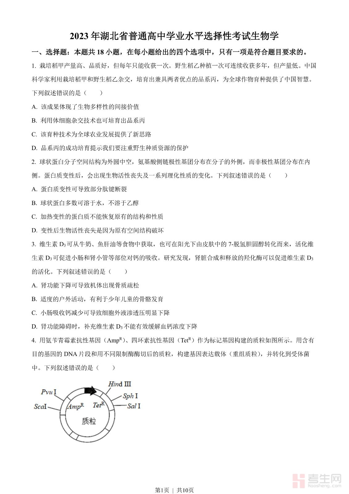 2023年高考生物试卷