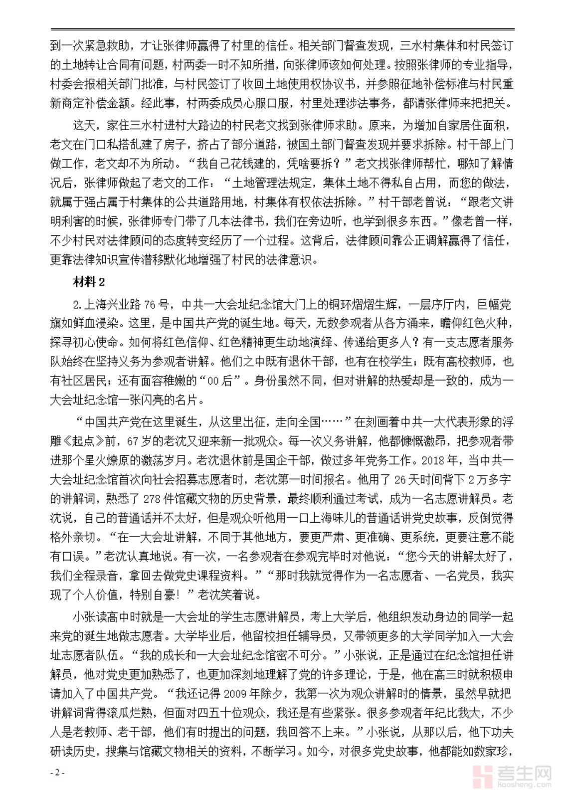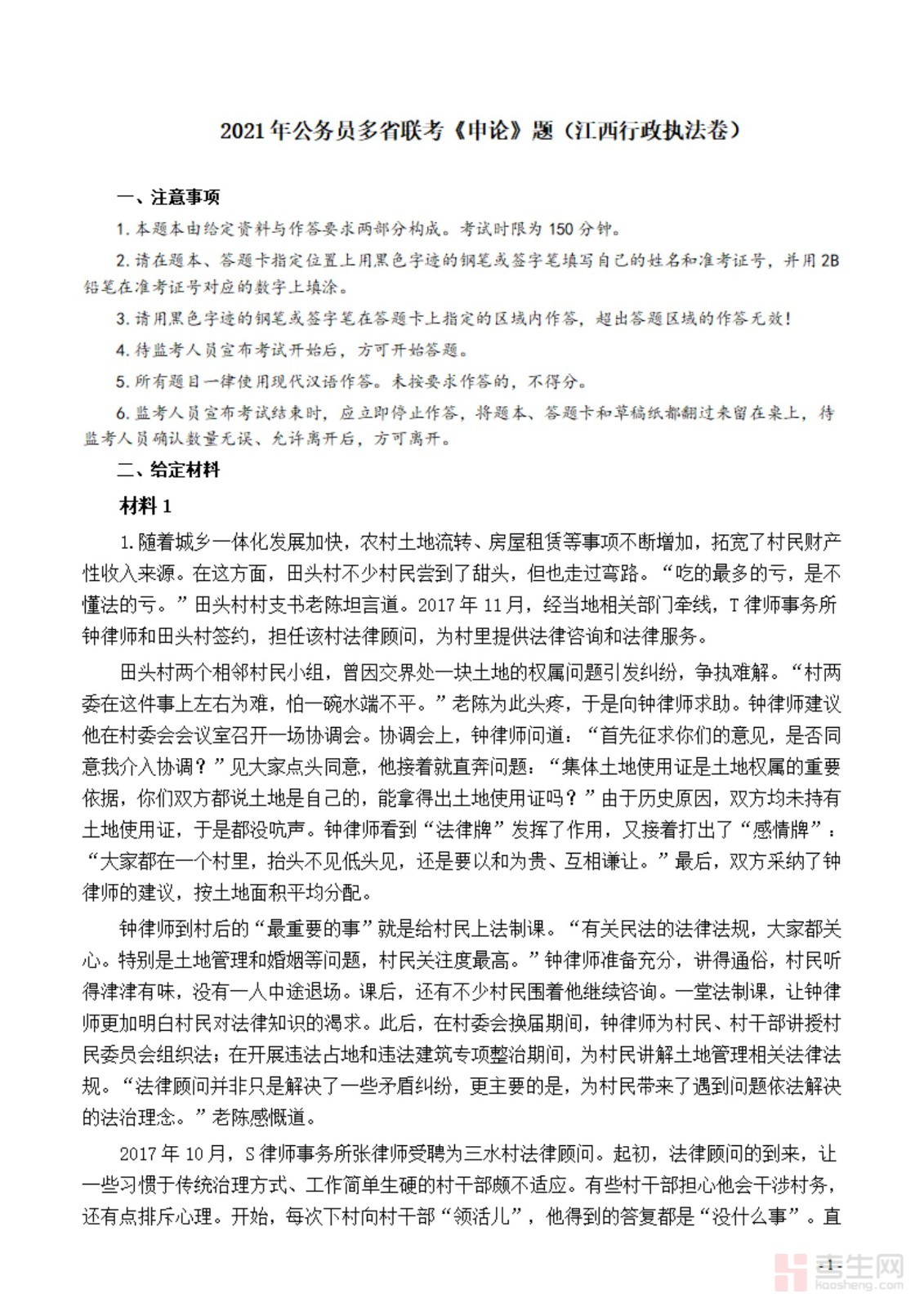 2021年公务员多省联考《申论》题(江西乡镇卷)及参考答案