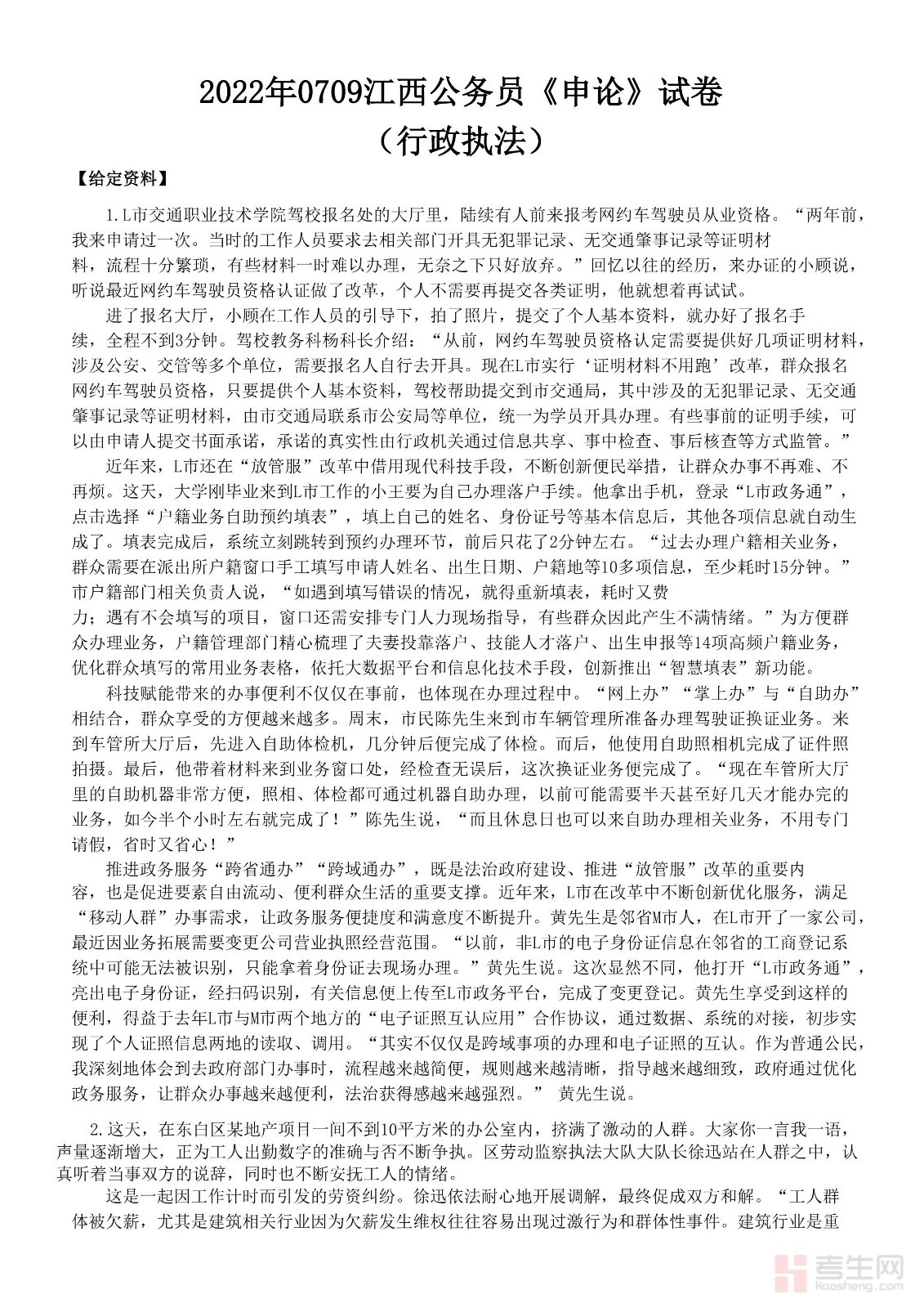 2022年0709江西省公务员联考申论真题及答案(行政执法类卷)