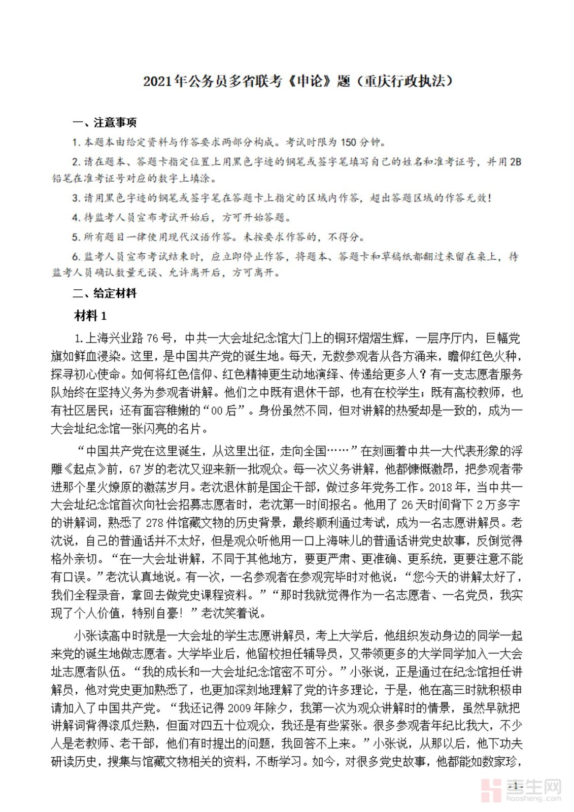2021年公务员多省联考《申论》题(重庆行政执法卷)及参考答案