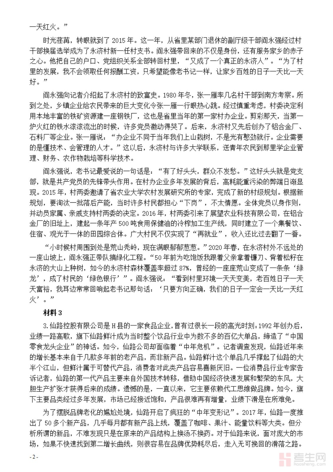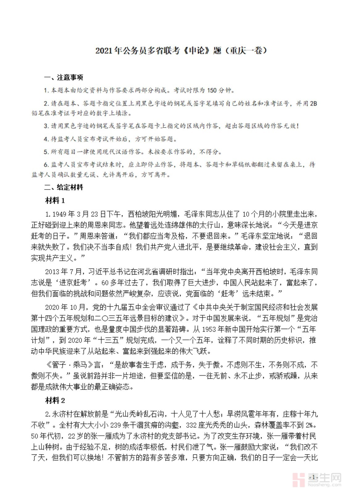 2021年公务员多省联考《申论》题(重庆二卷)及参考答案