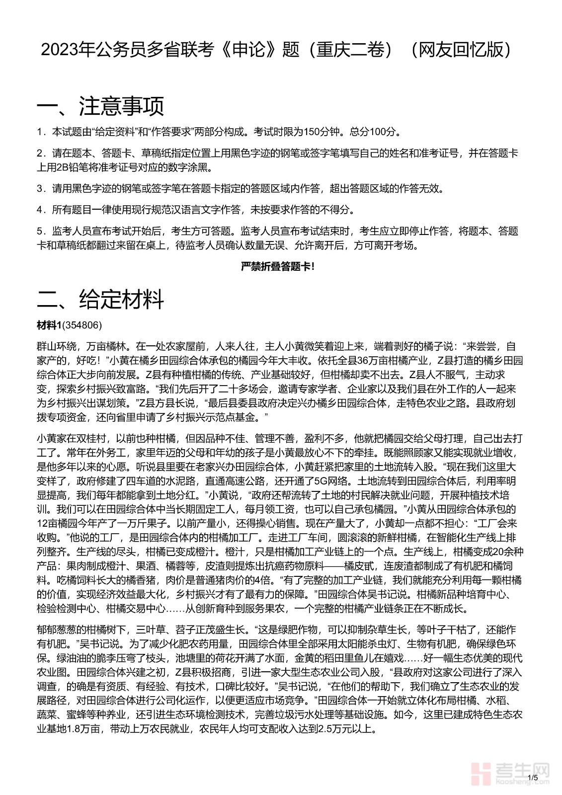 2020年0822公务员多省联考《申论》题(重庆一卷)及参考答案