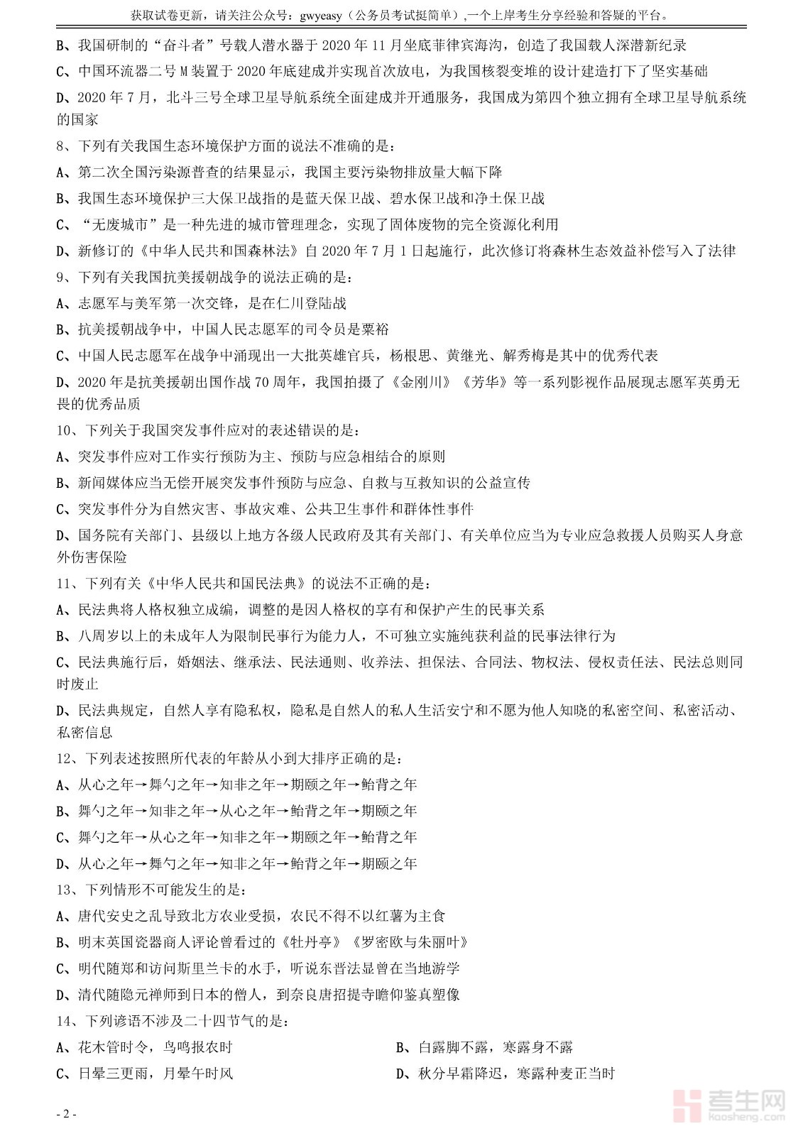 2020年0822重庆公务员考试《行测》真题参考答案及解析