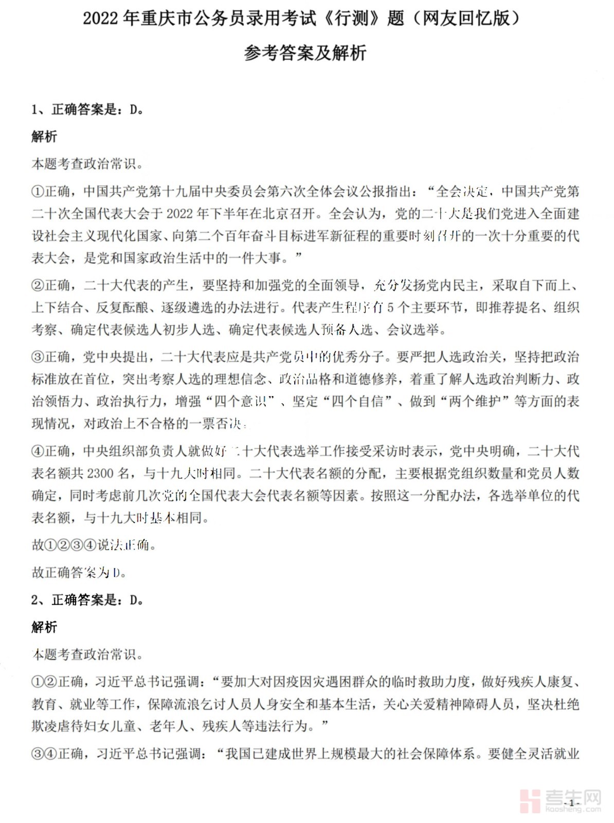 2022年重庆市公务员录用考试《行测》题答案及解析