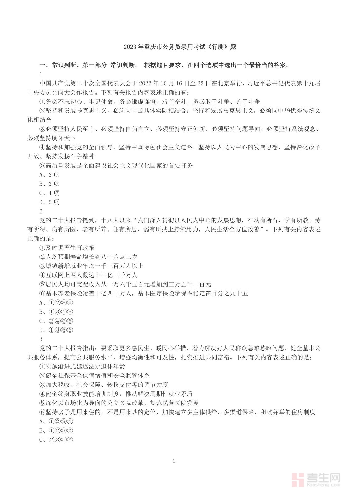 2023年重庆市公务员录用考试《行测》真题答案及解析