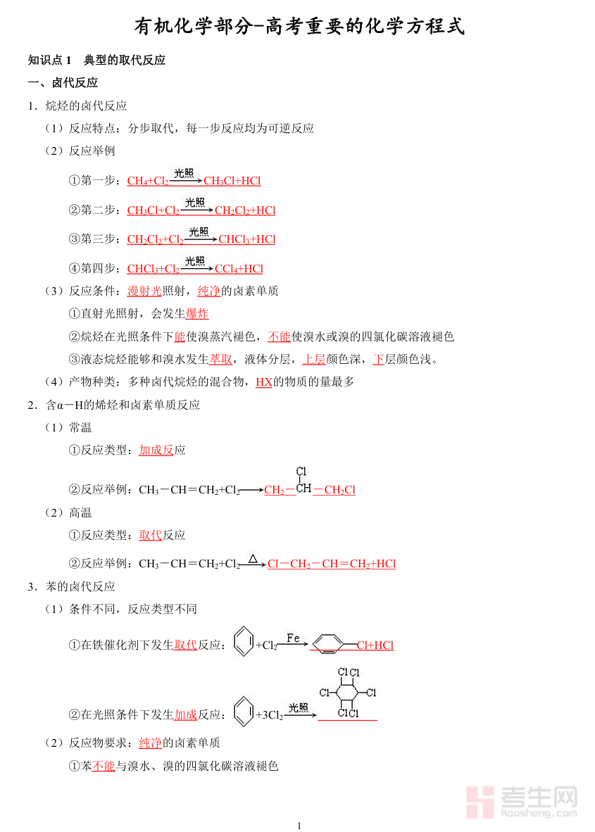 汇集所有重要有机化学方程式,清晰易懂,方便查阅!