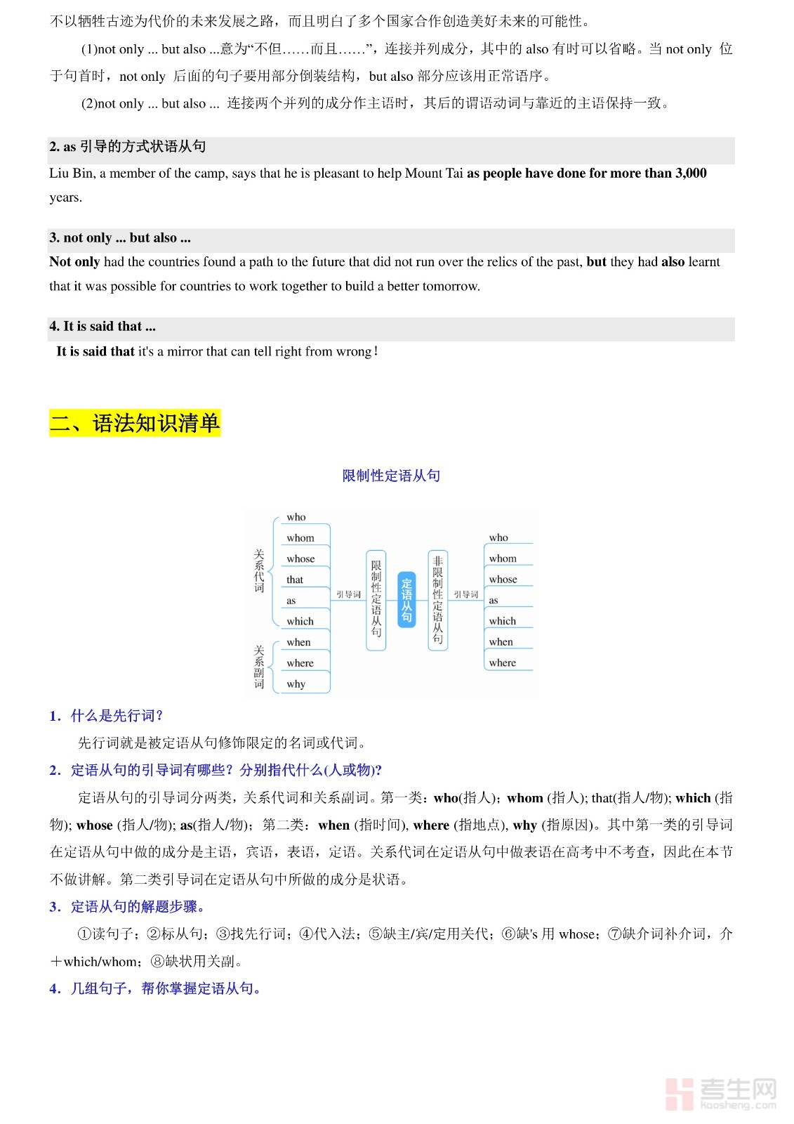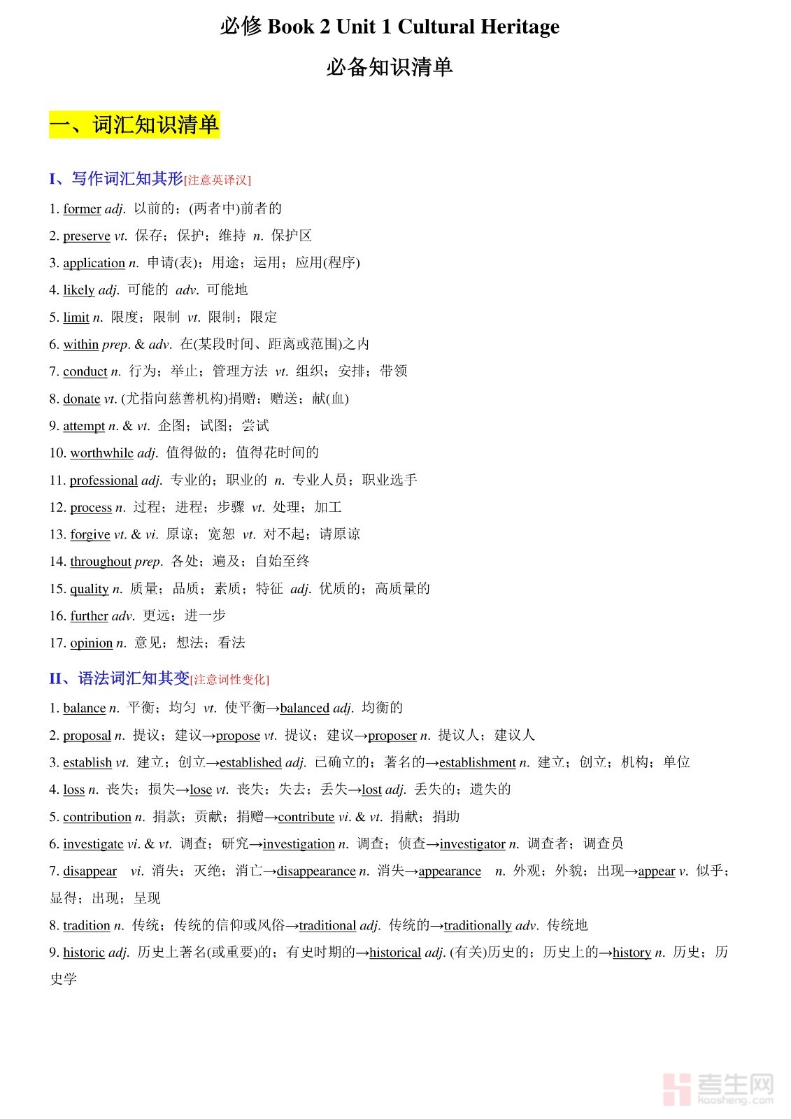 人教版高中英语必修二知识点总结梳理词汇语法知识清单词汇语法考点梳理同步必备