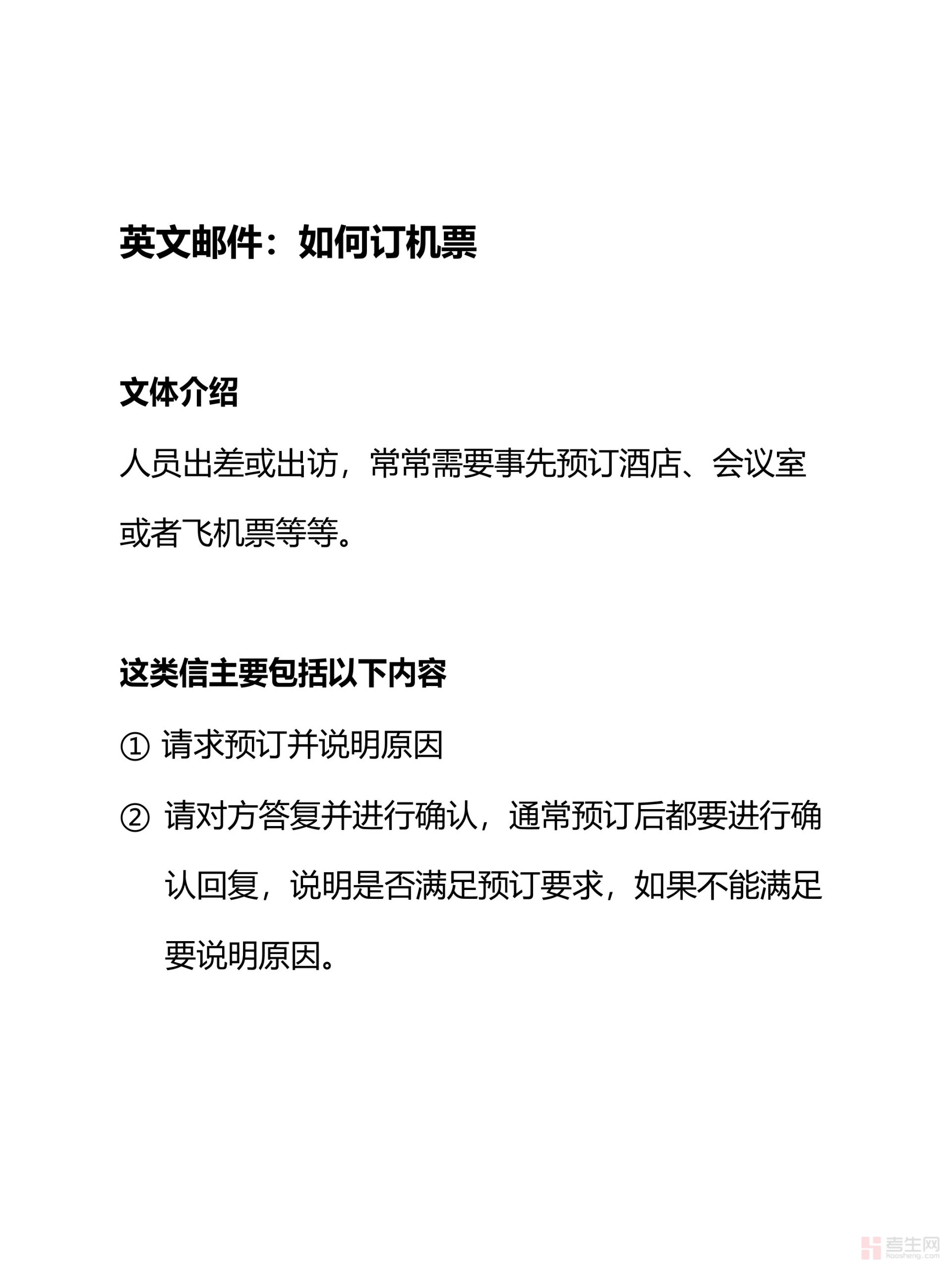 出差或者旅行时,一封清晰、专业的英文订机票邮件至关重要!今天我为大家带来了一份“英文邮件:如何订机票”的资料,帮助你轻松应对所有机票订购邮件,提升你的职场英语沟通技巧!