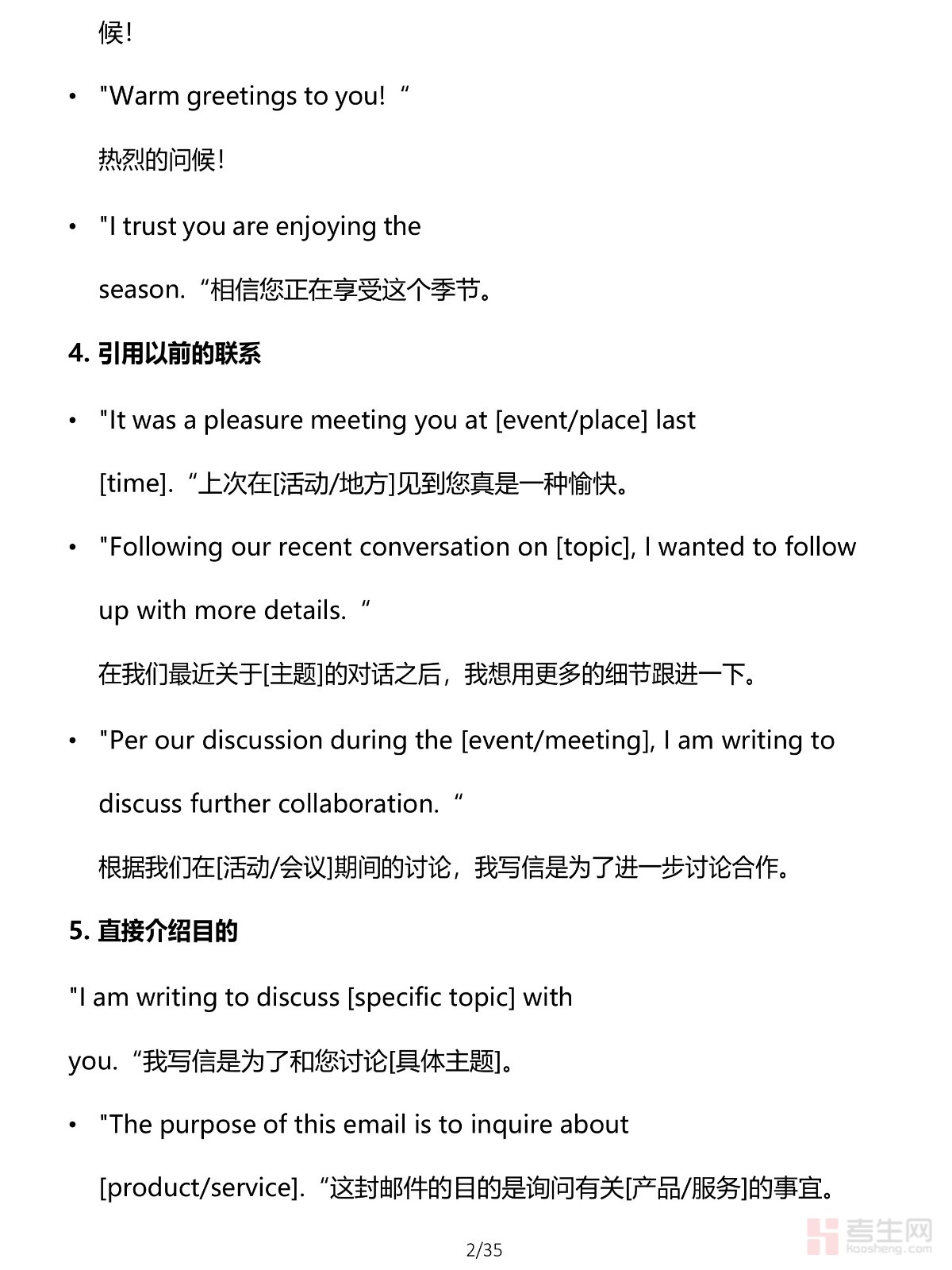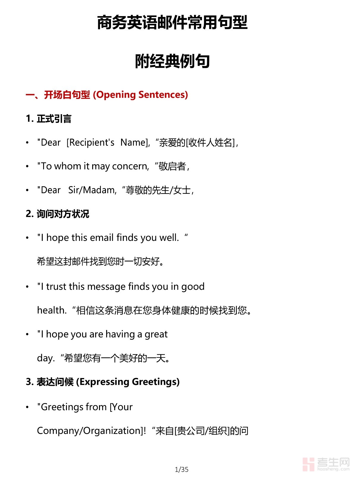 职场沟通中,商务邮件的写作技巧至关重要!今天,我为大家带来了一份“英文商务邮件必备表达-经典例句”的资料,帮助你提升邮件写作水平,让你的商务邮件更加专业、高效!