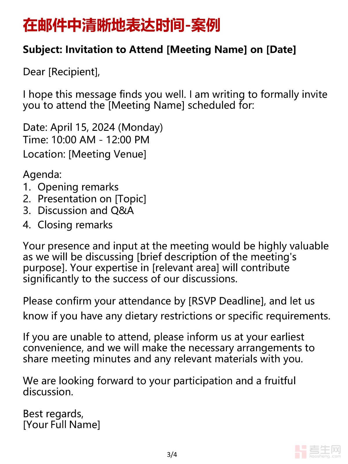 大家在职场或学习中,写英文邮件时是不是常常被时间表达搞得头疼?别担心!我为大家准备了一份“英文邮件常用时间表达+案例”的资料,助你轻松写出专业邮件,直击要点!