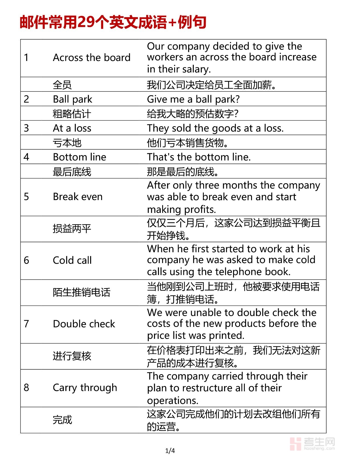 想要让你的英文邮件简洁明了又不失礼貌吗?今天分享的是 29个最常见的英文成语,附带例句,让你在邮件沟通中游刃有余!无论是求职、合作还是日常沟通,这些成语都会让你的表达更具专业感和亲和力。