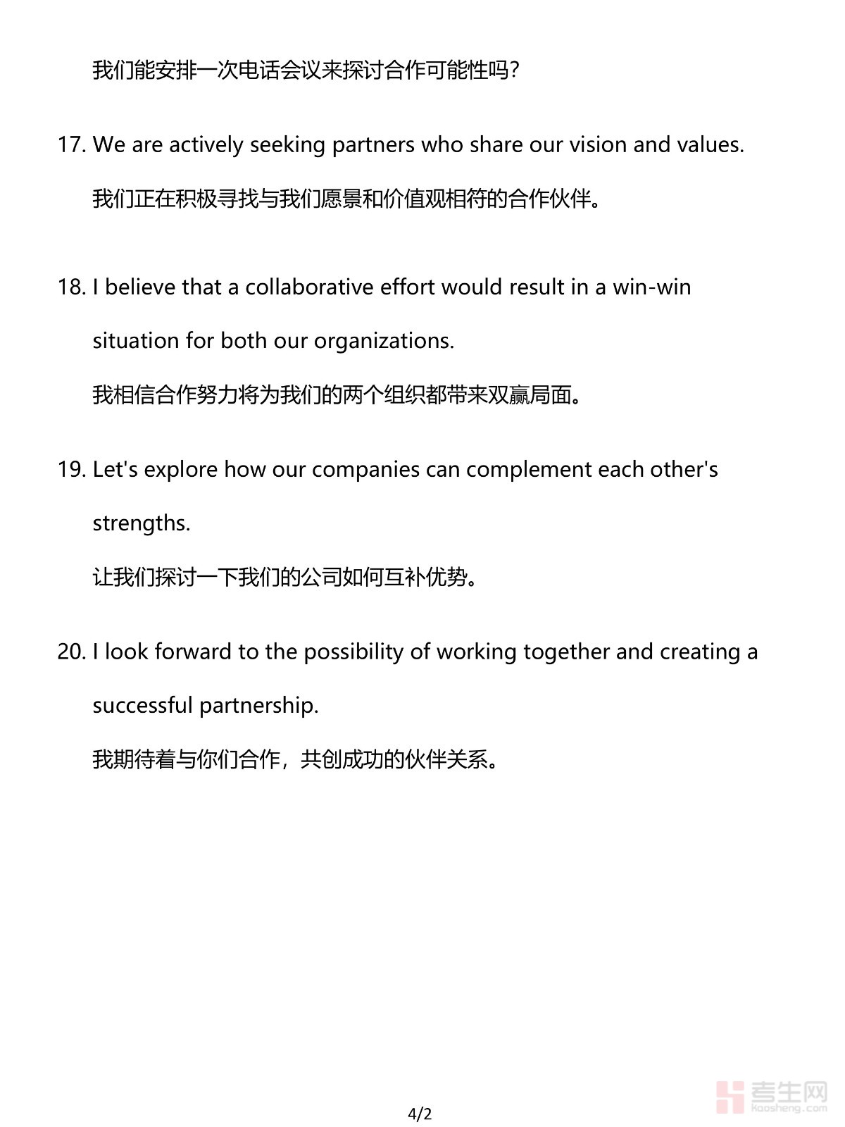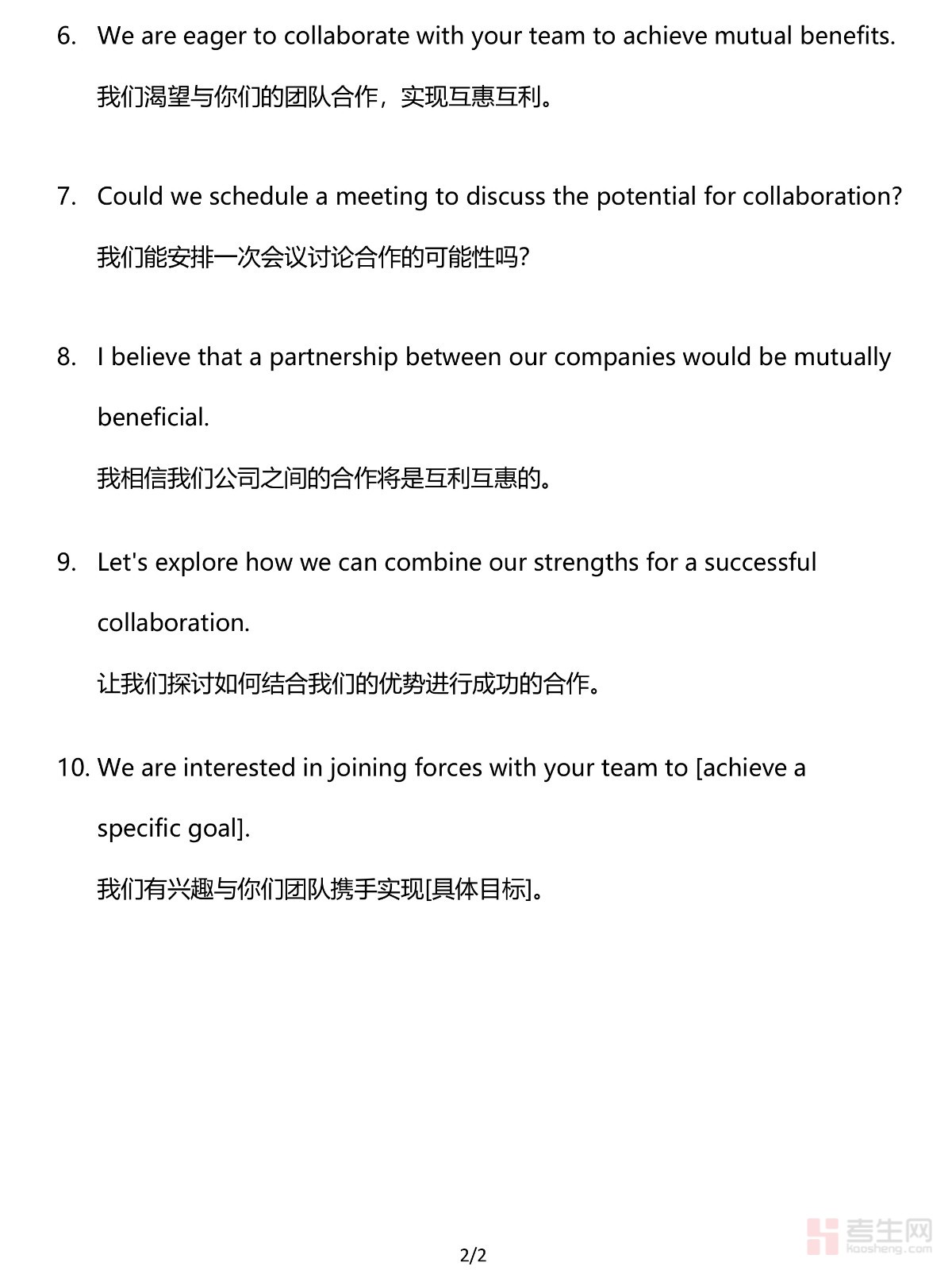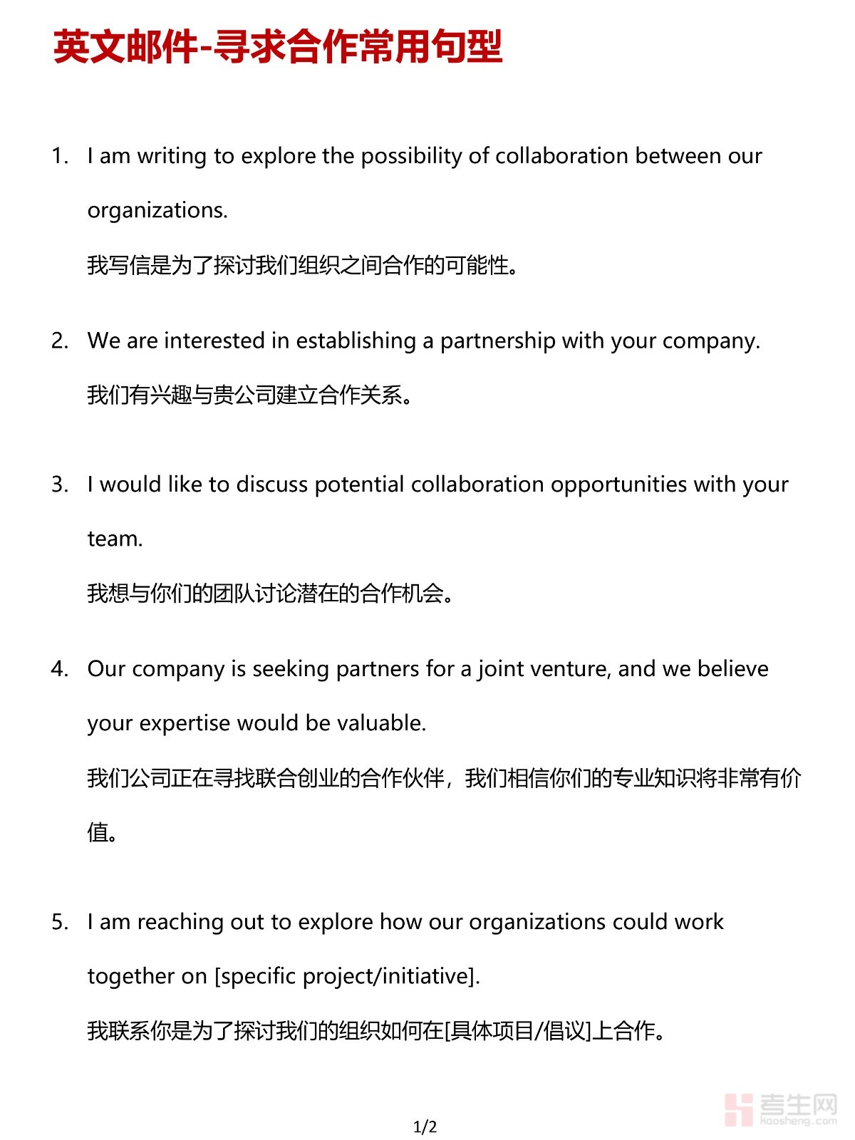 你是否在写英文邮件时常常感到无从下手?特别是想要寻求合作的时候,语句是否总是显得不够得体、专业?别担心,小编为大家整理了一份“英文邮件-寻求合作常用句型”,让你轻松应对各种场合
