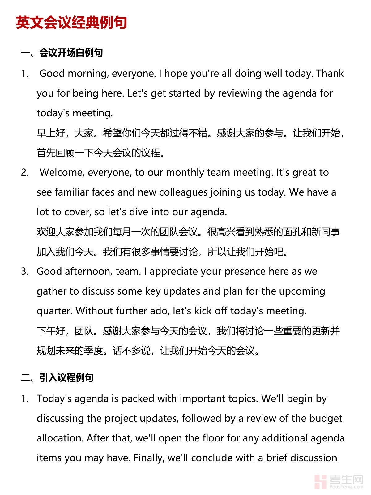 在国际化的职场中,开会是不可或缺的一部分,而流利的英语表达更是关键!今天,我为大家准备了“英文会议必备表达-经典例句”,让你在每次会议中都能轻松应对,发言自如!