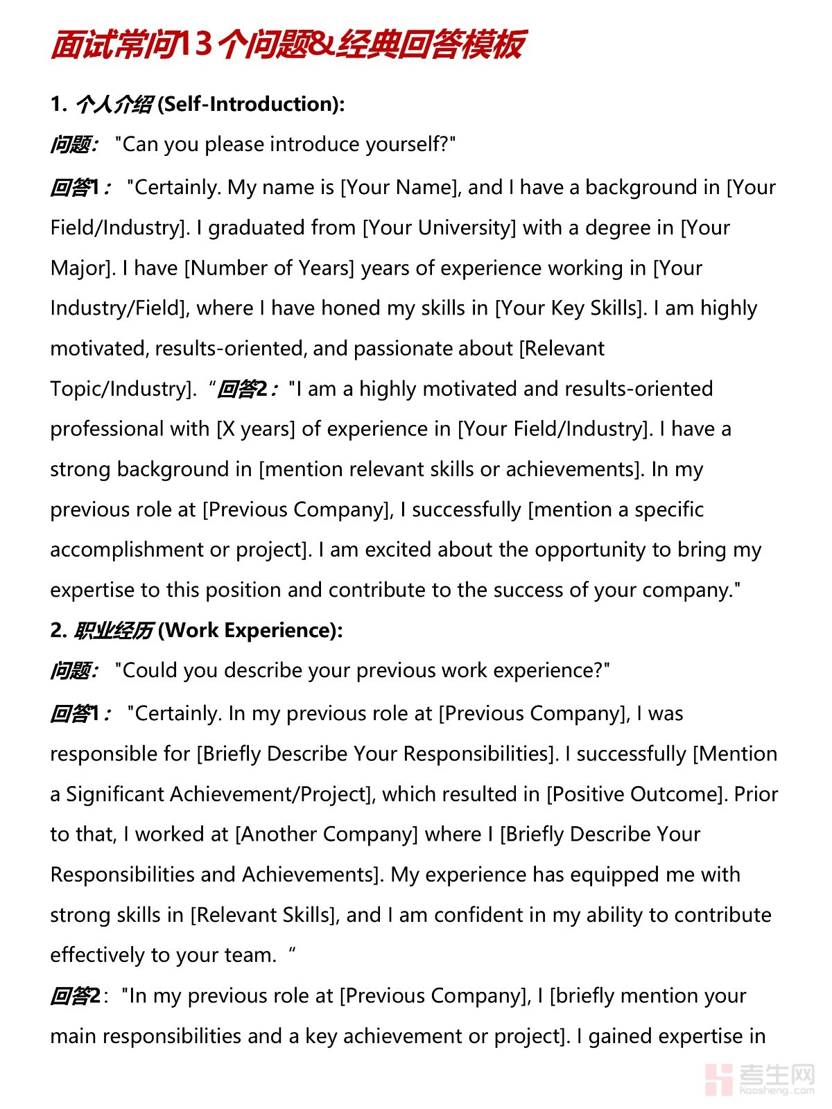 面试是职场生涯中的重要一环,想要脱颖而出,流利的英文口语是必不可少的!今天,我带来了“英文面试口语全攻略”,助你快速掌握面试必备技巧,自信展现自己,赢得面试官青睐!