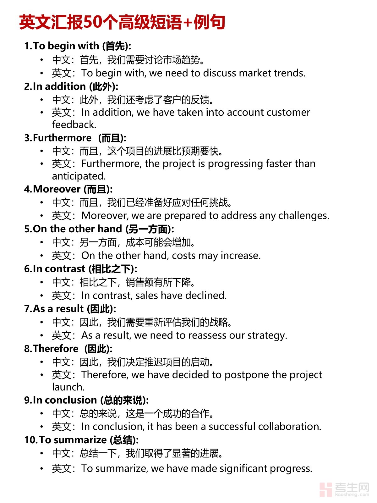 Presentation-英文汇报50个常用短语+例句