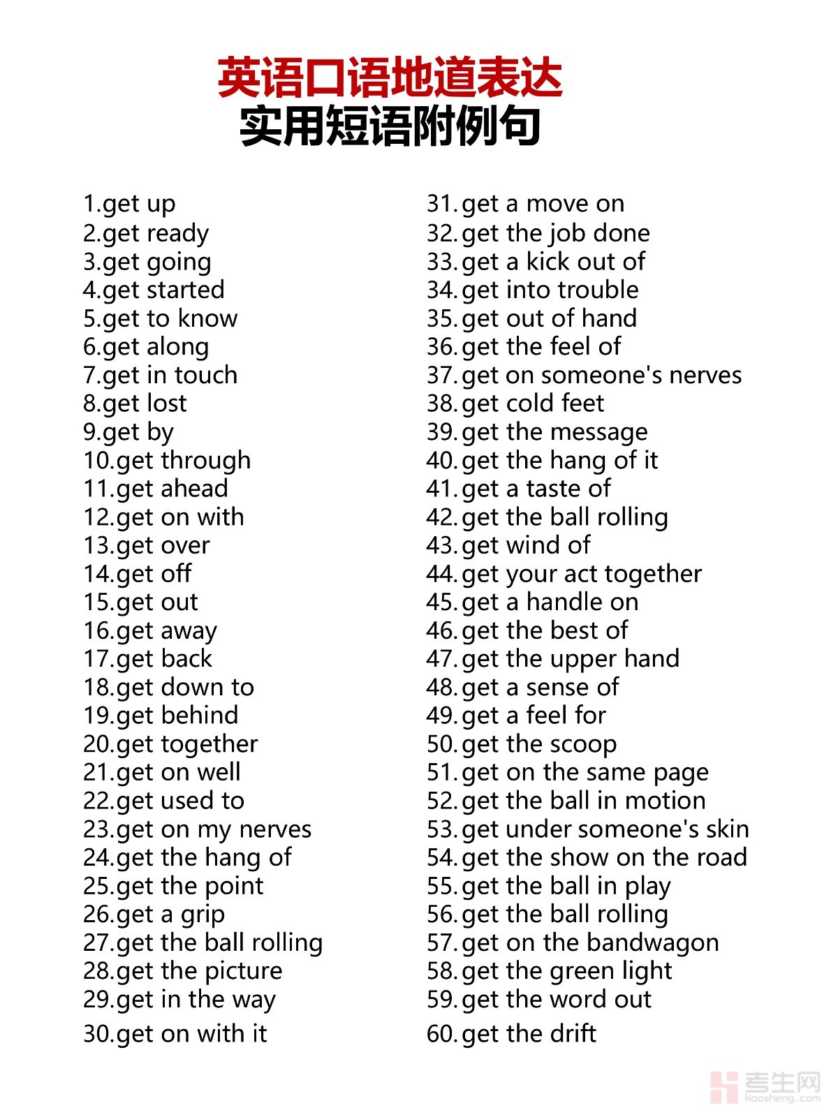 “Get”是英语中最常用的动词之一,掌握它的多种用法能让你的口语更自然、流畅!今天,我为大家准备了“英语口语地道表达-短语+例句-Get”,让你轻松在日常交流和职场对话中运用自如!