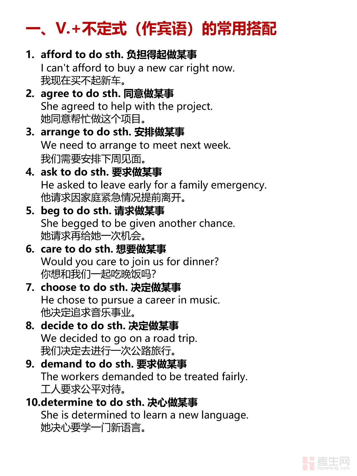 想在英语口语和写作中游刃有余?掌握词组固定搭配是关键!这份【英语词组固定搭配-V+to do(一)】为你准备了丰富实用的搭配,帮助你在各种场合自信表达,让你的英语更加地道流利!