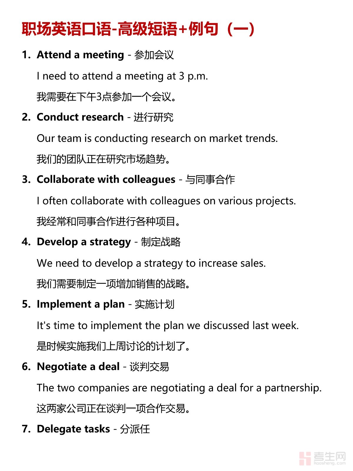 职场英语口语高级表达!常用短语+例句(一)
